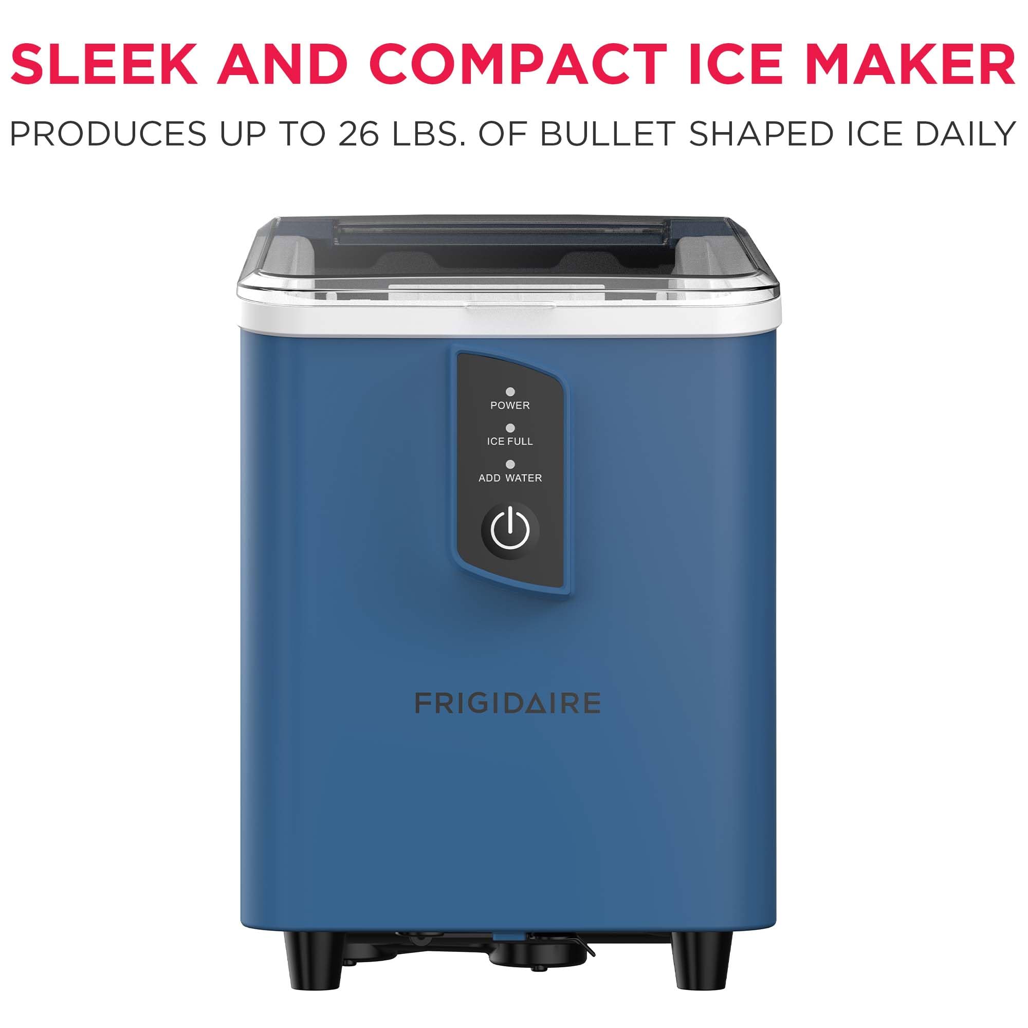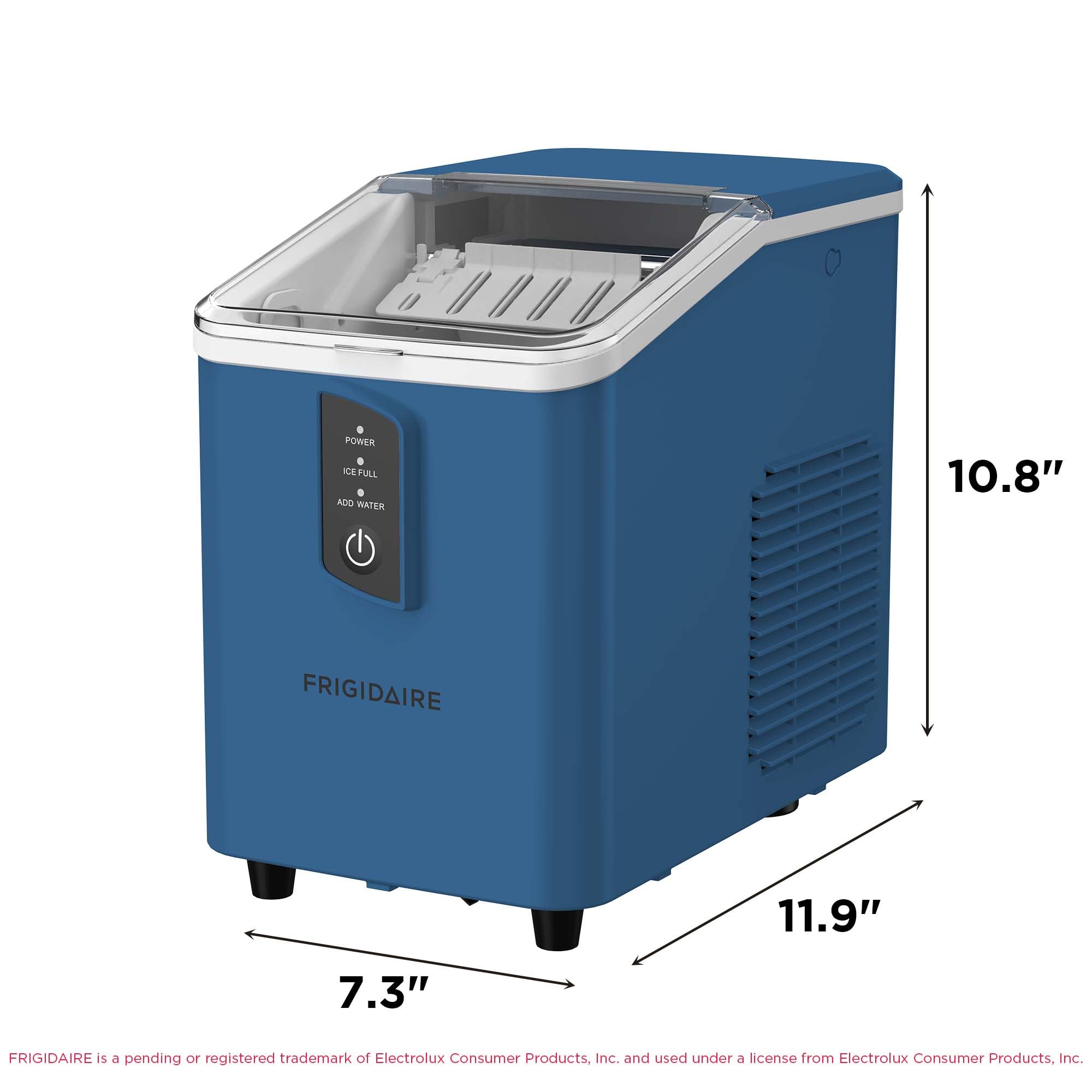 COMPACT & EASY: Frigidaire's countertop portable ice maker offers a wide range of uses with a compact dimension of 13 x 11 x 12.5 inches. Our countertop ice maker is portable and compact, making it simple to transport and use