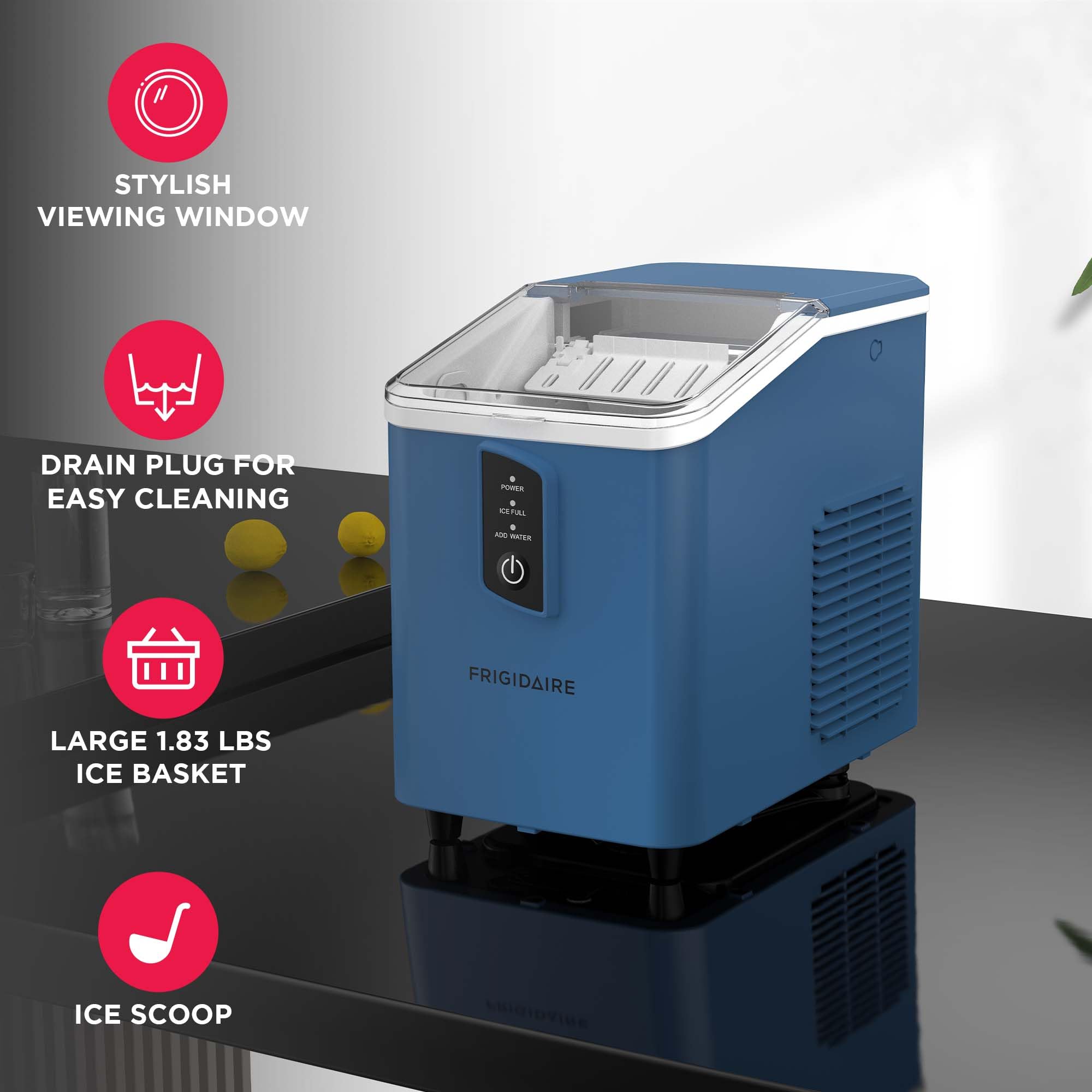 MODERN DESIGN: Ice Maker with a large transparent window so you can always see your ice being made and the level