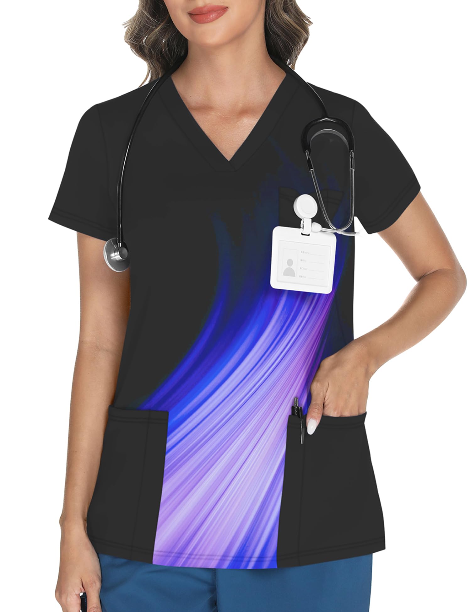 Practical Front Pockets: Stay organized with two functional front pockets, offering easy access to essentials for a convenient work experience, making our scrub tops for women both practical and functional.