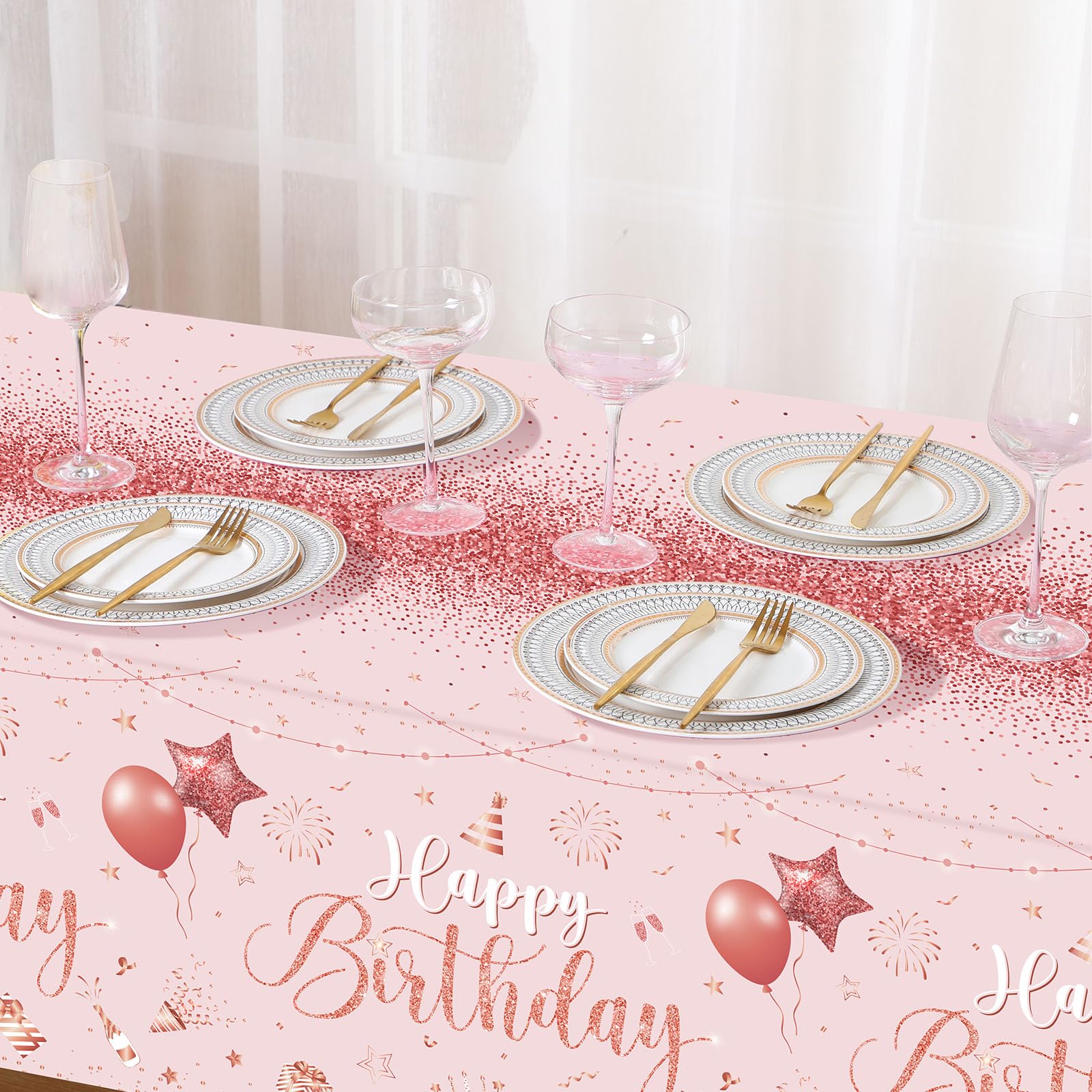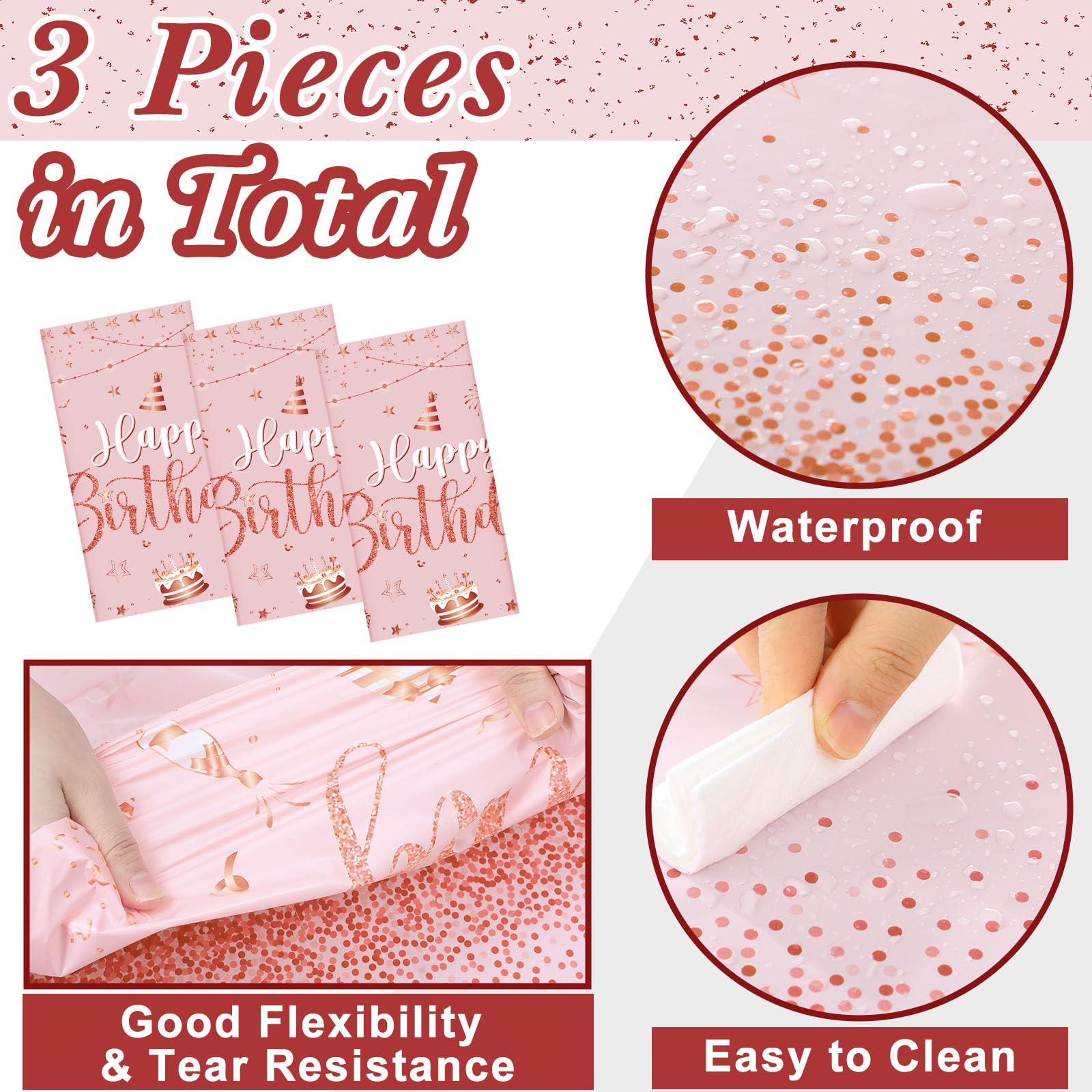 What You Will Receive: the package contains 3 pieces of happy birthday tablecloths in classic pink rose and gold colors, enough to meet your using and replacing needs for holding a birthday party