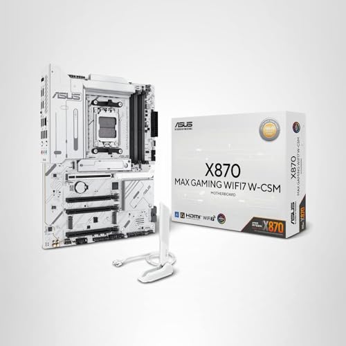 ASUS X870 MAX GAMING WIFI7 W features an 8-layer white PCB, 12+2+1 80A power stages, DDR5, PCIe 5.0 x16 SafeSlot, triple M.2 (1x PCIe 5.0), Wi-Fi 7, USB4® Type-C®, 2.5Gb LAN, BIOS FlashBack™, Aura Sync RGB, AI Cooling II, Q-Antenna, and ASUS 5X Protection III.