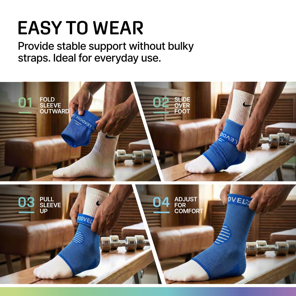 Breathable & Lightweight Fabric: Our ankle compression sleeve is made with premium fabric, breathable material that offers a lightweight feel. Designed with comfort in mind, it provides reliable ankle support while keeping your feet fresh and dry throughout the day.
