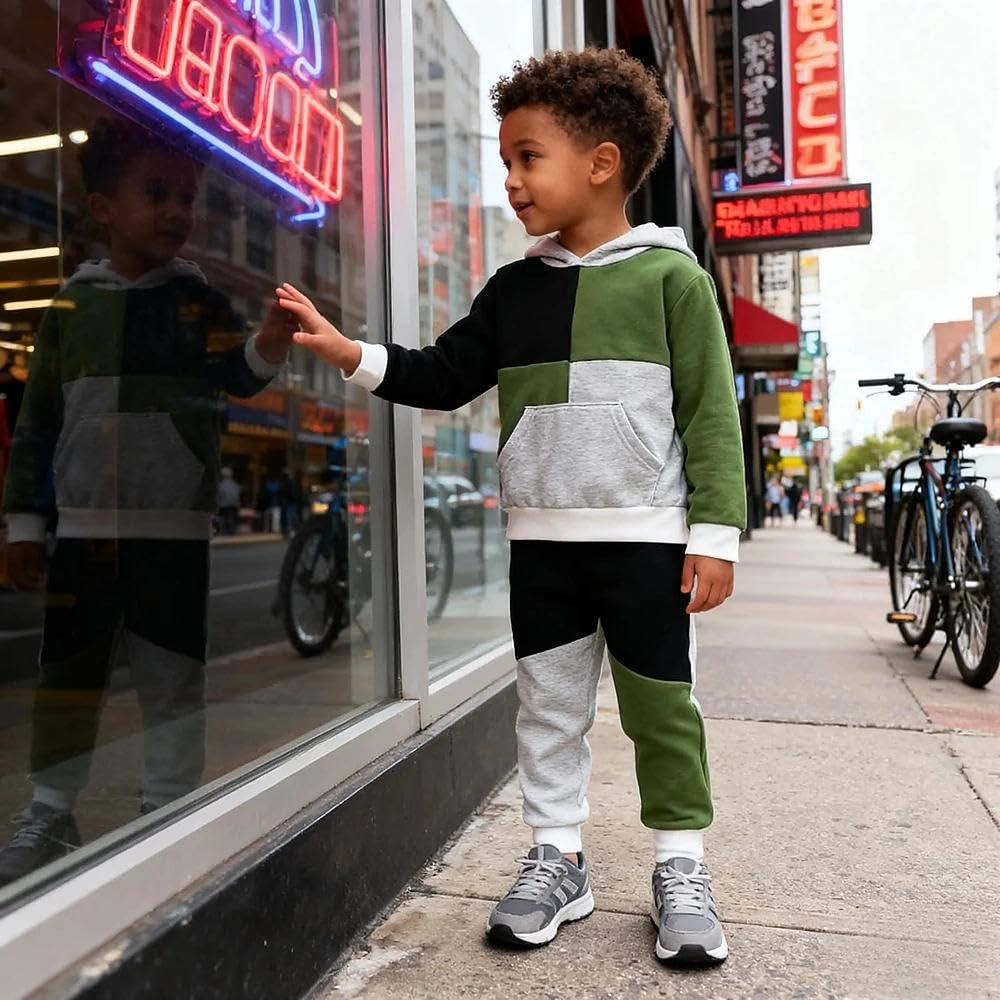 This set includes one Colorblock Hoodie with a hood and one pair of coordinating pants, offering a complete and stylish outfit for your toddler. Perfect for casual wear, special occasions