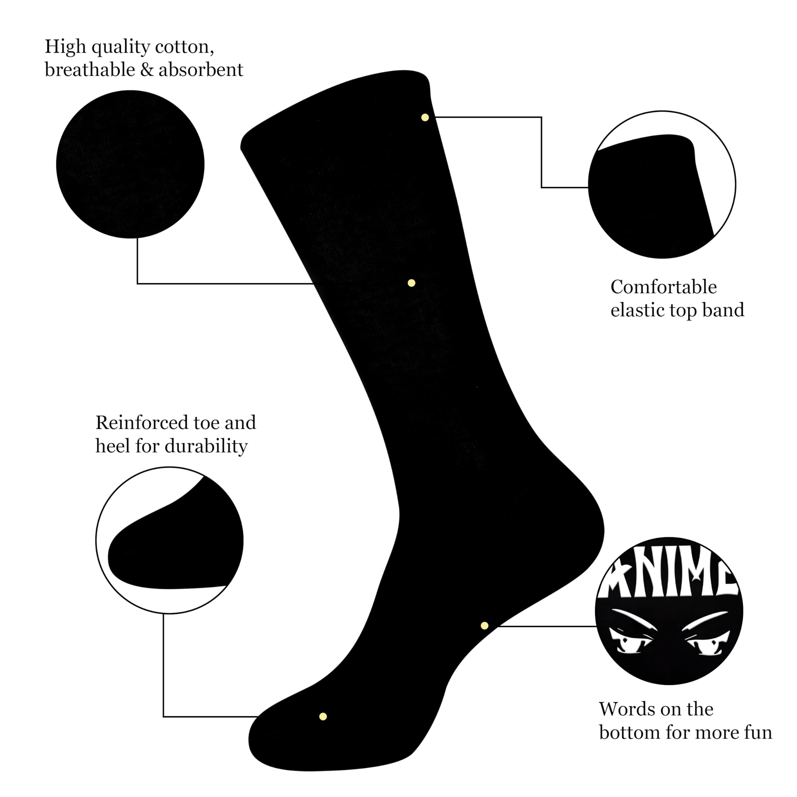 Non-slip Socks: The lettering on the bottom of the socks is non-slip. You can only wear the socks and don't have to worry about slipping. You can also be worn with shoes. Black design, versatile.