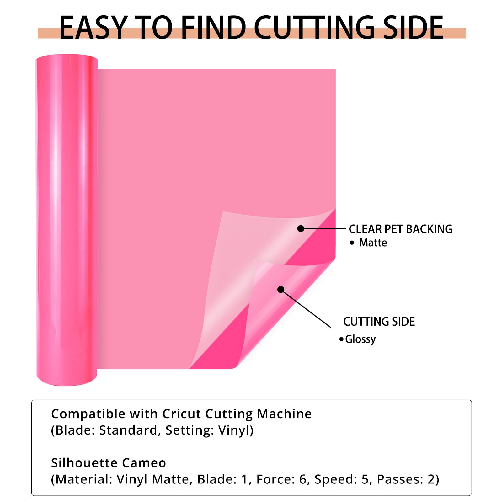 CLEAR PET BACKING: Say goodbye to paper backing, which sticks to mat and ruin your design. Using our neon pink permanent vinyl with PET backing, you will not need to clean your mat and worry about project damage. No more cheap paper backing ruining and separating from the neon pink vinyl in the cutting process. Our PET backing is the ultimate answer to your woes. NOTICE: NOT HTV VINYL!!