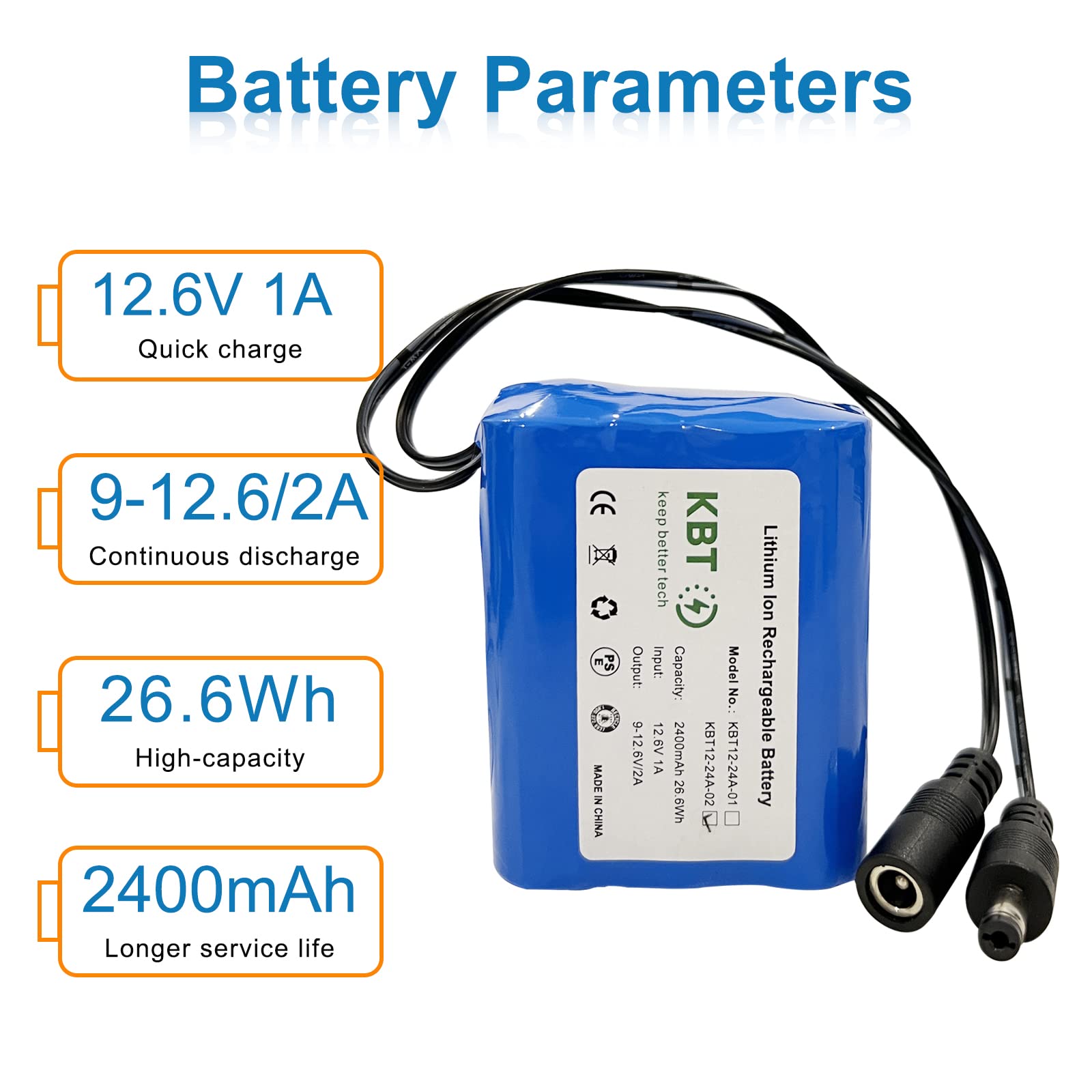 Long using life: this 12V battery pack build with lithium-ion battery, no memory effect, is of over 800 times charge-discharge cycles.