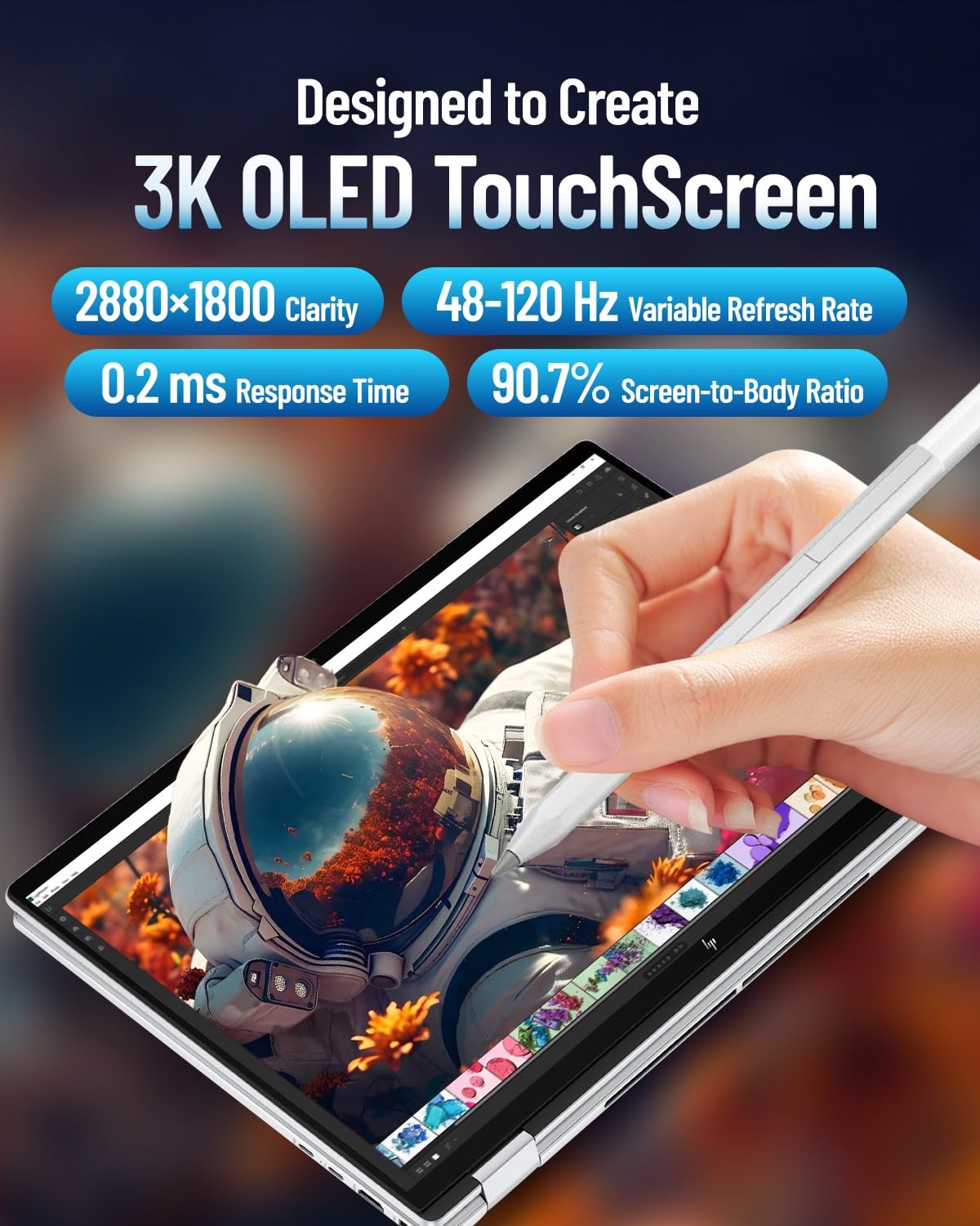 🖼️【OLED Display, Made to Create】A brilliant 3K OLED touchscreen with 2880×1800 resolution, 120Hz refresh rate, and 400 nits brightness makes every detail pop—perfect for artists, editors, or anyone who wants their hp laptop to match their visual imagination