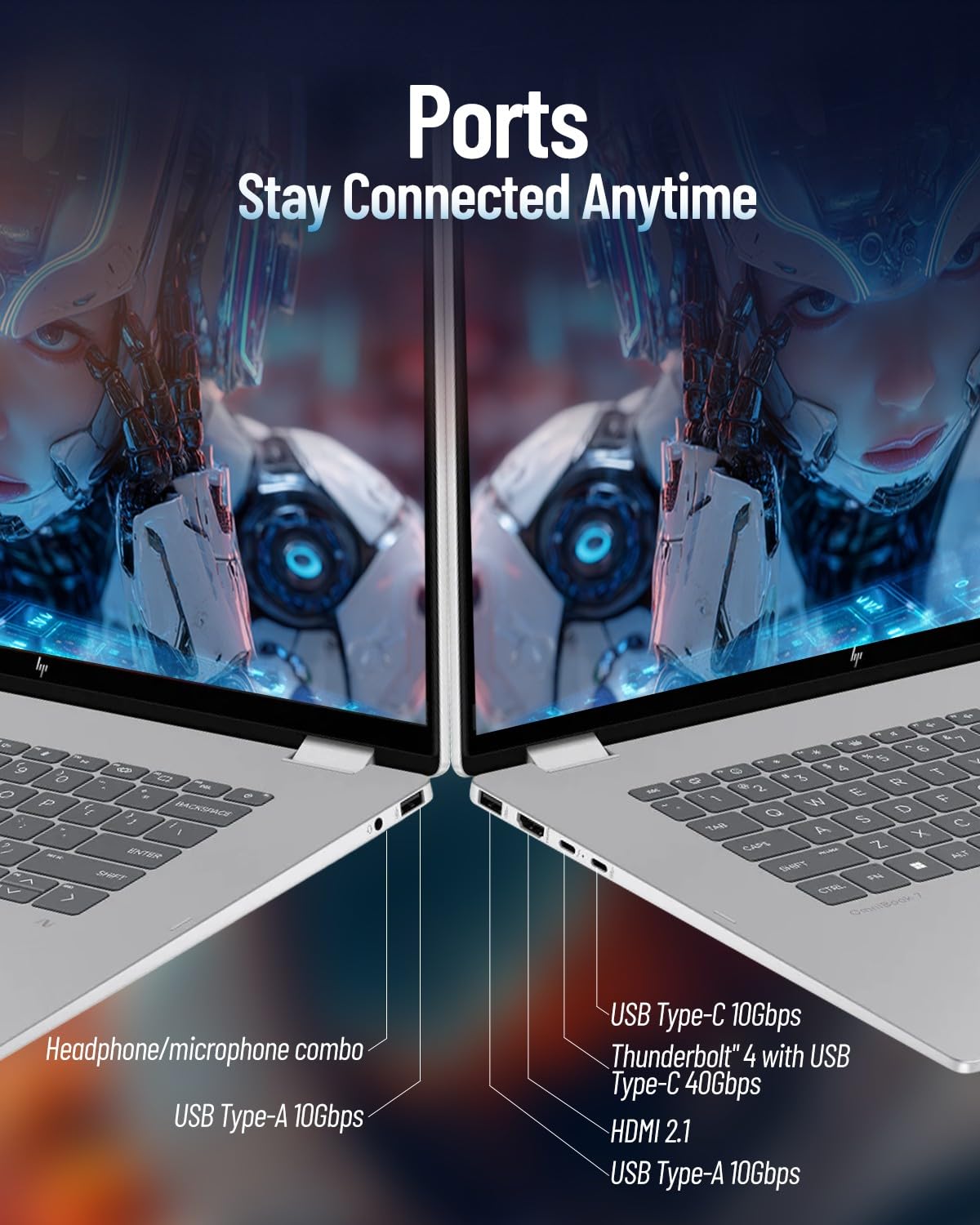 📐【Built for Life on the Move】At just 3.95 lb, this hp laptop balances portability and power. With Thunderbolt 4, HDMI 2.1, USB-C/A ports, and a 4-cell battery, it’s your take-anywhere convertible workstation ready for multitasking on the go