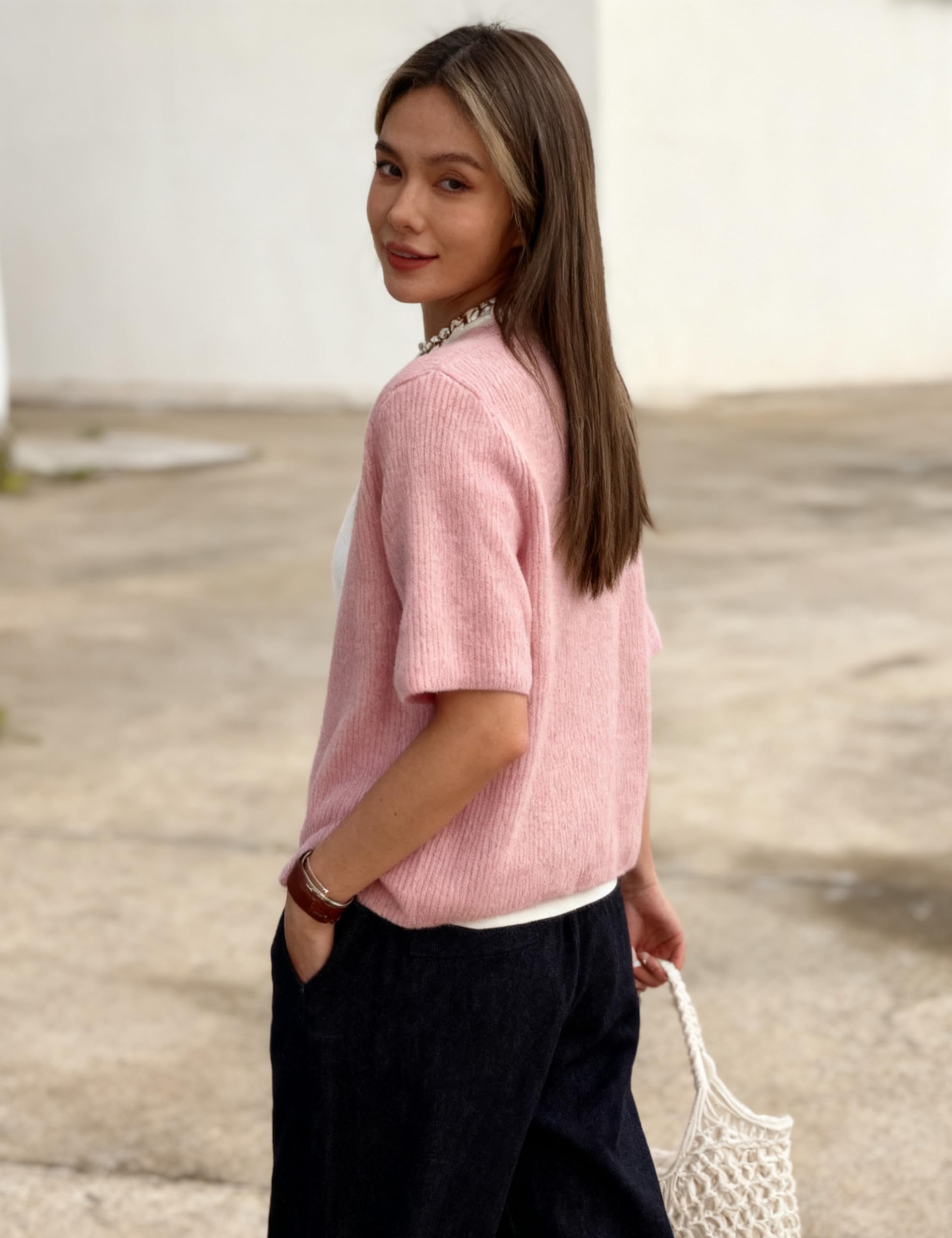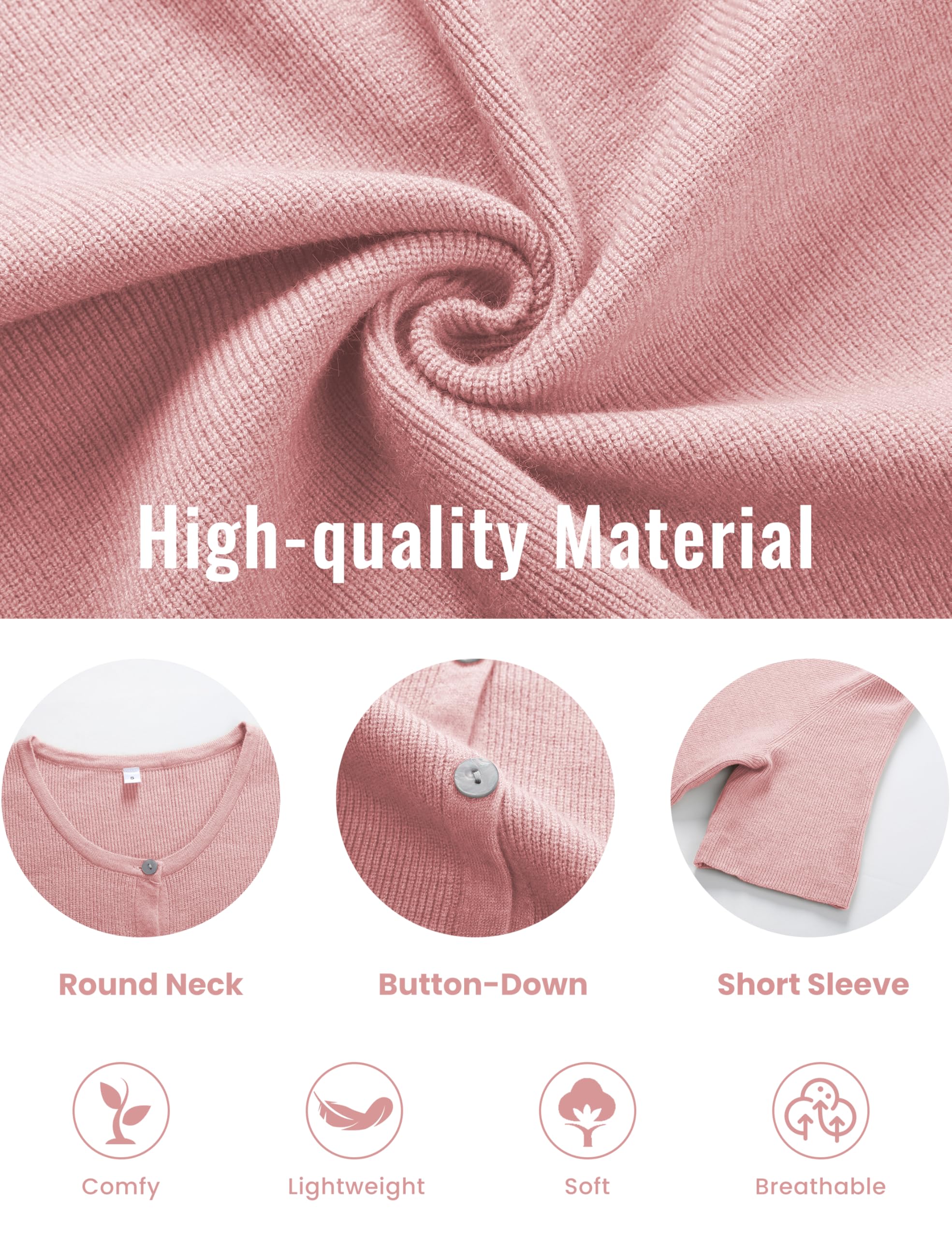 This women's casual short-sleeve cardigan is made from a premium, soft knit fabric. It is lightweight, cozy, comfortable, and breathable, ensuring a gentle touch against your skin