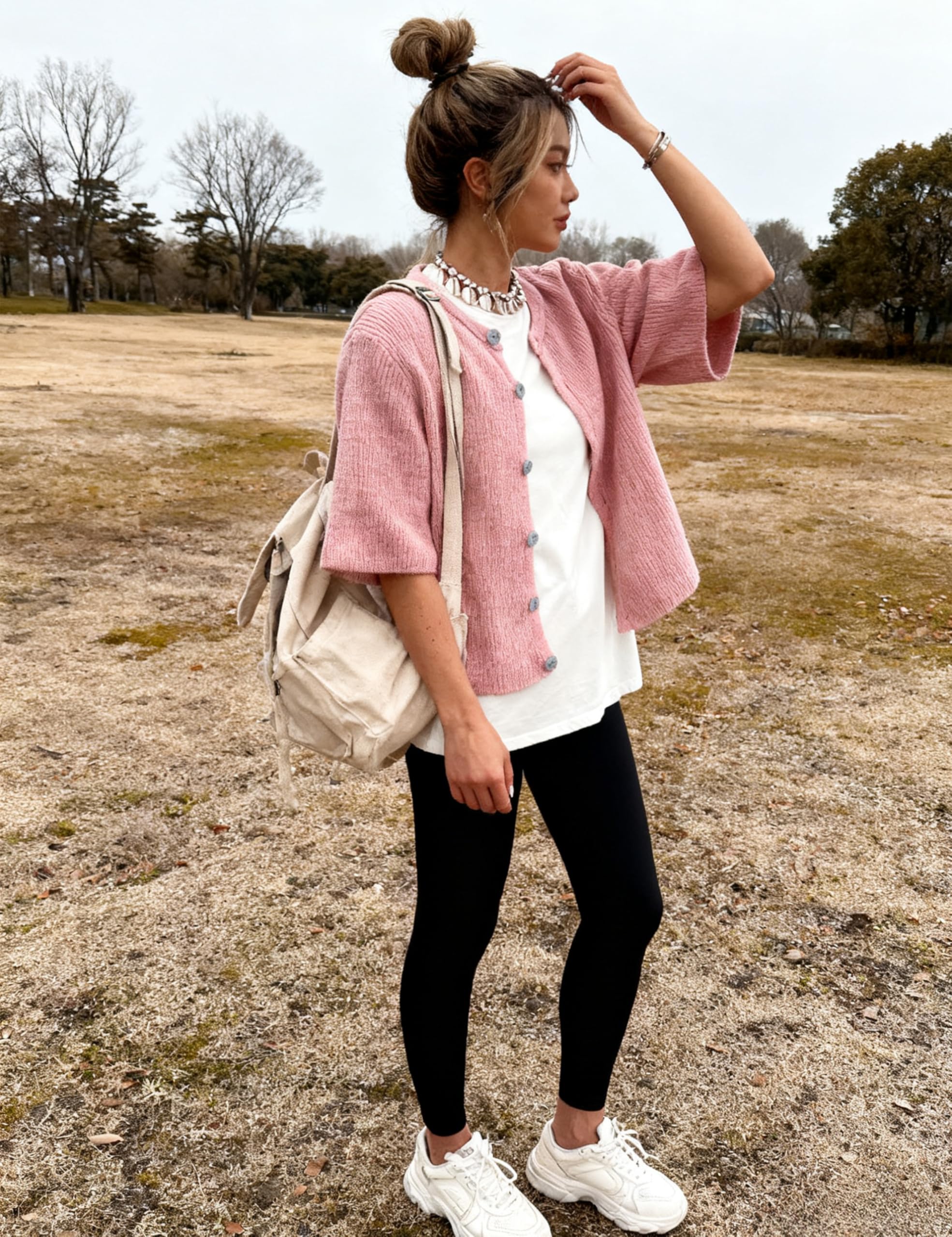 Pair this cardigan with white ruffled skirts, jeans, shorts, or layered over dresses. The neutral tone allows for easy styling with different accessories and footwear, perfect for creating an elegant, everyday look