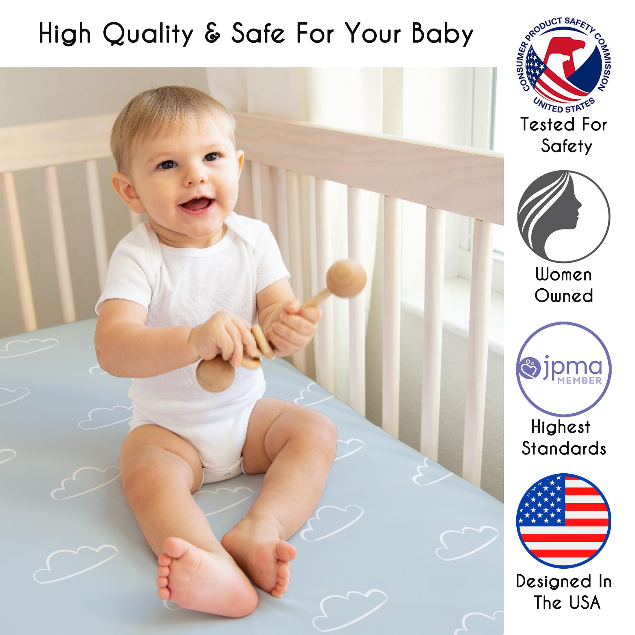 SAFE & DURABLE: Sweet Jojo Designs is a proud Baby Safety Alliance member and rigorously tests products to meet or exceed CPSC safety standards. Our breathable crib sheets are designed with busy parents in mind. Quick to change, easy machine washable and tumble dry on low. The high quality stitching and fabric ensure long-lasting use and will hold up wash after wash. Use one crib sheet in your newborns bed and have spares nearby to swap in between washes & to be prepared if an accident happens.