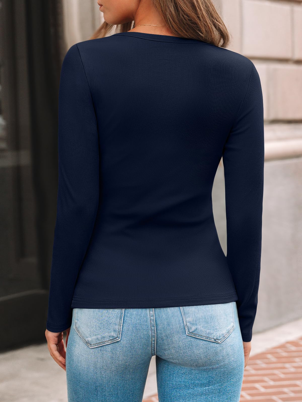 Long sleeve ribbed crewneck shirts for women, business casual dressy tops in fall & winter, suit for office,outdoor,home