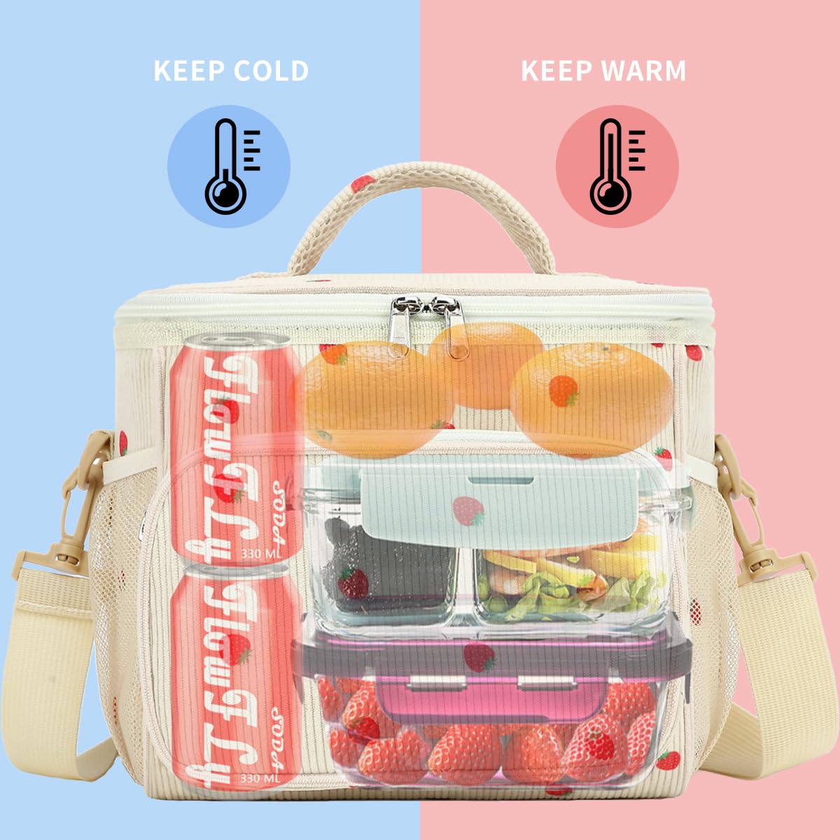 ✿Comfortable & Portable – Carry it your way with the comfort-grip handle or the 48" detachable shoulder strap. Lightweight, durable, and equipped with smooth zippers, this lunch bag is perfect for work, picnics, travel, or the gym