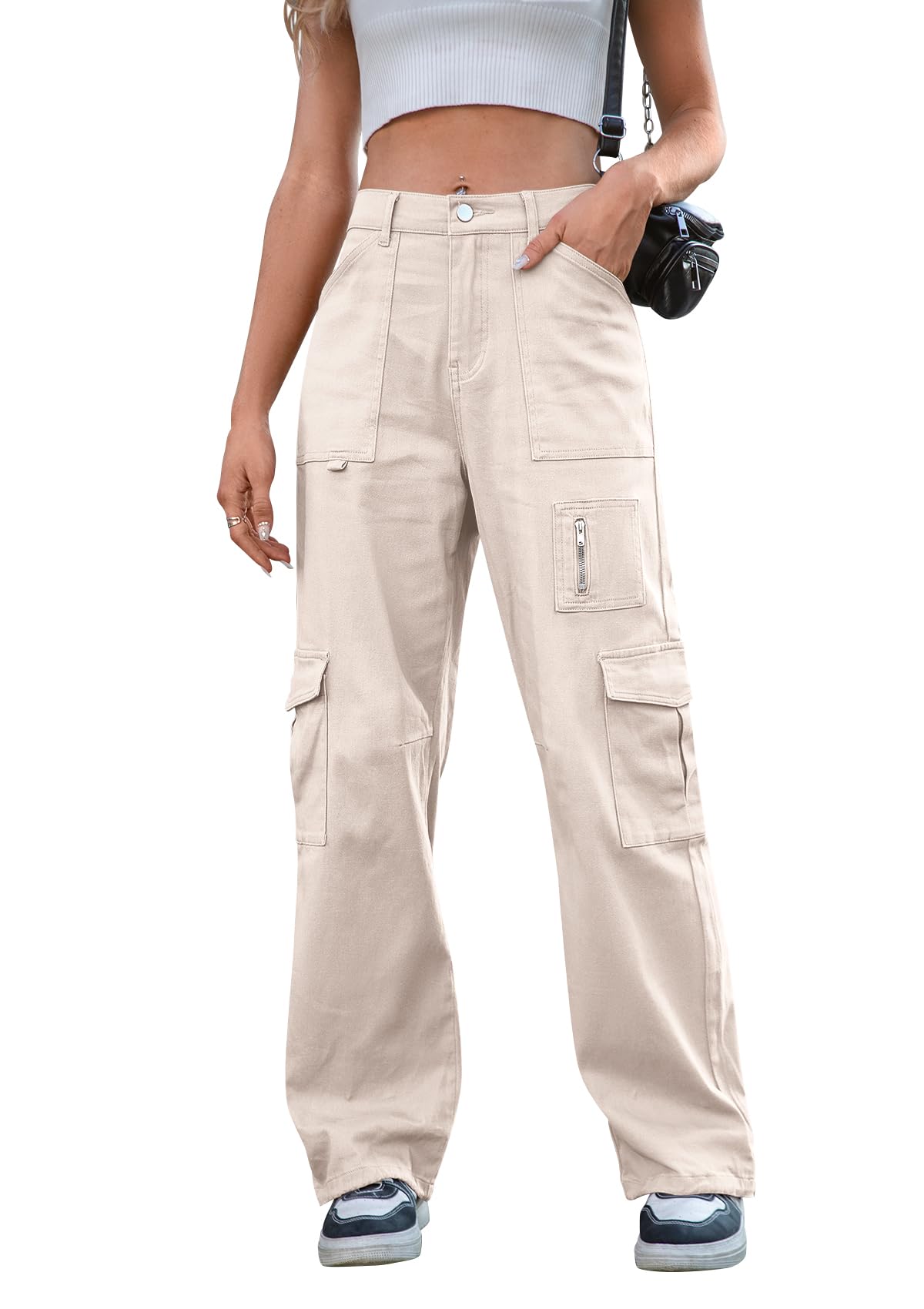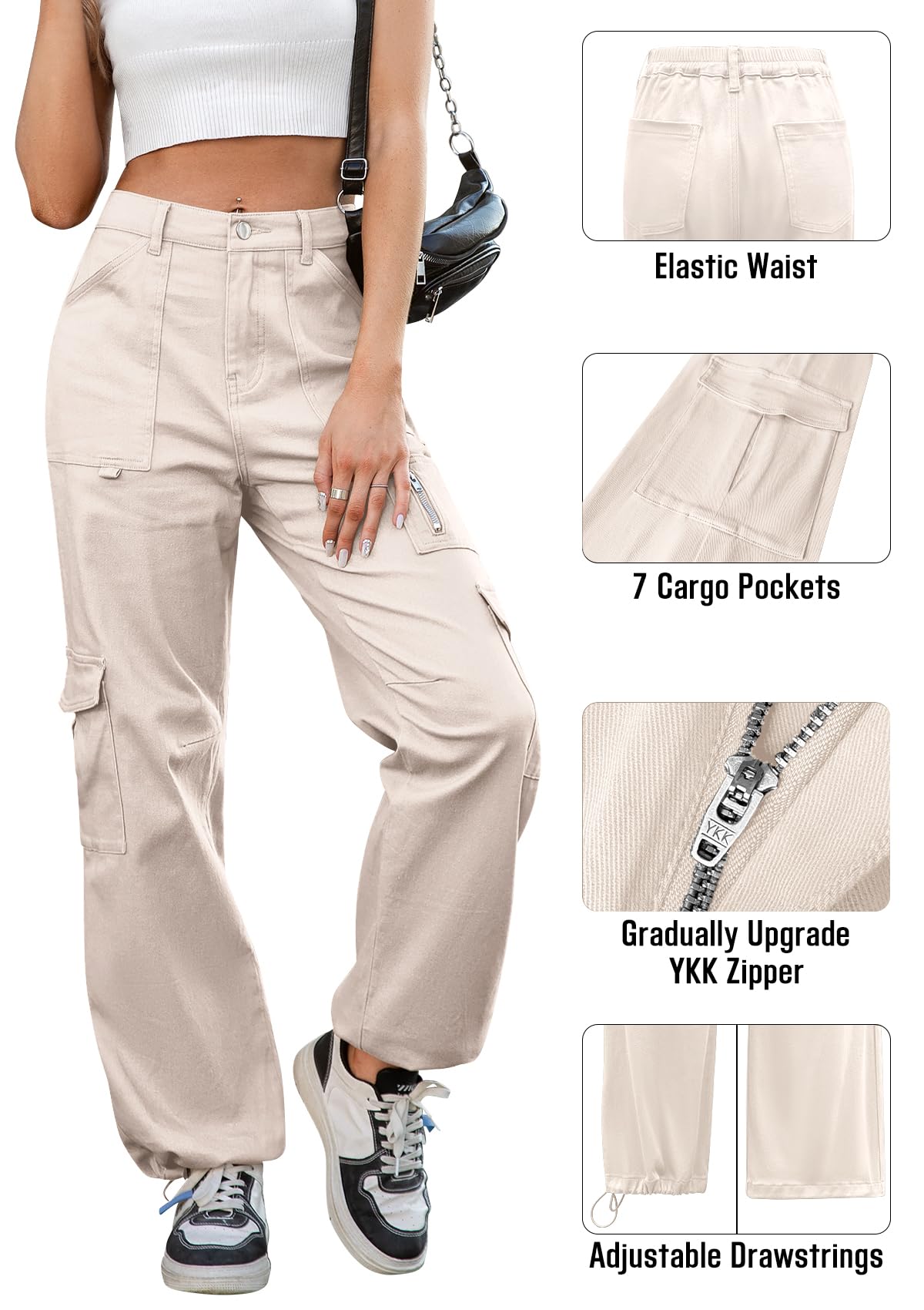 Unique Design: Women high waist cargo pants with pockets, elastic adjustable back waist, wide leg cargo pants, baggy cargo pants, 7 multi-function pockets, the zipper pocket on the left leg make you more stylish and street feel.