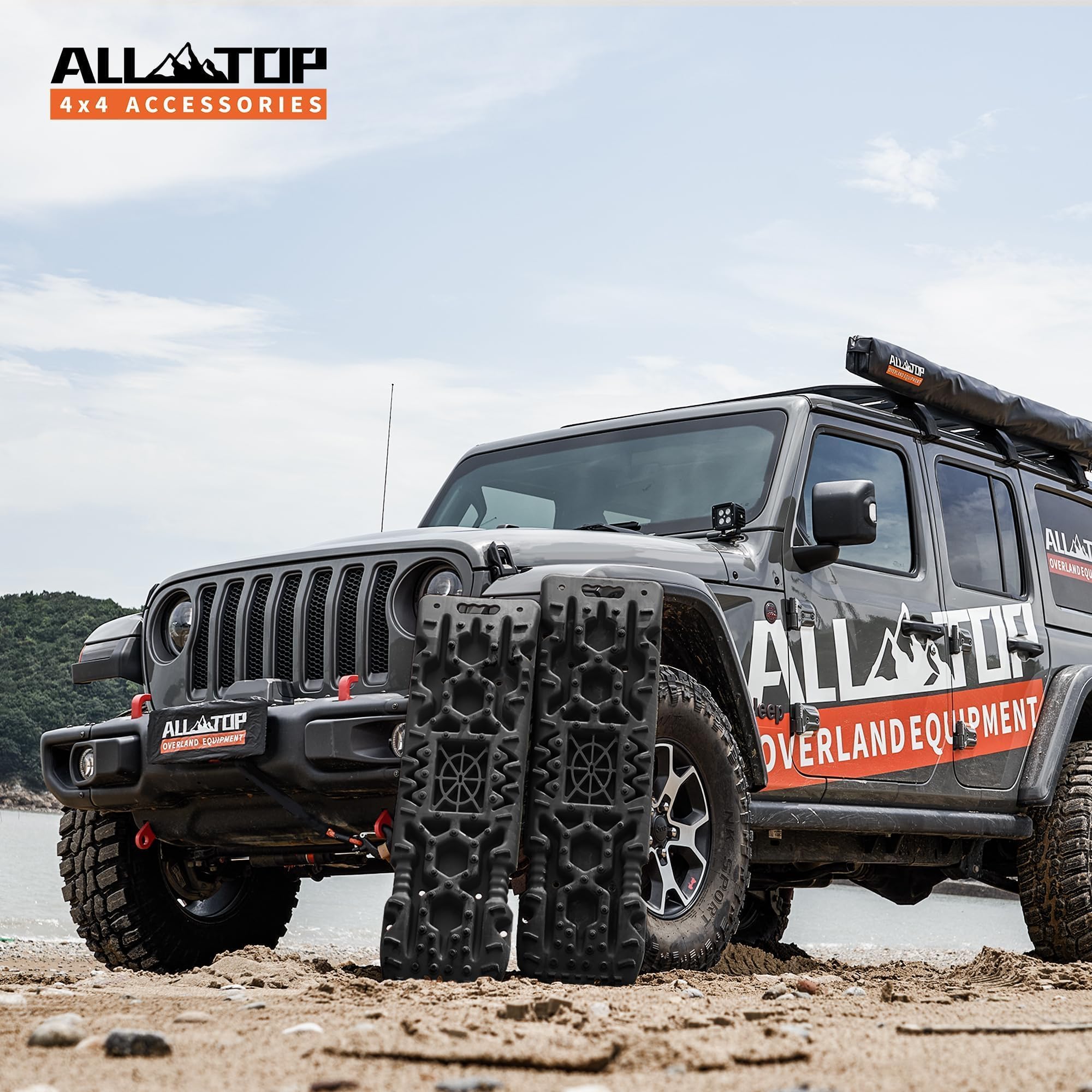 【Heavy-Duty Design】Elevating your off road adventures with ALL-TOP Traction Boards, essential 4X4 accessories crafted from 100% Reinforced Nylon for exceptional toughness, strength, and resistance to heat, UV, and corrosion. The U-shape elastic design ensures stability and a strong grip, making them unbreakable for Overland and Recovery in extreme weather (-13℉ to 140℉).
