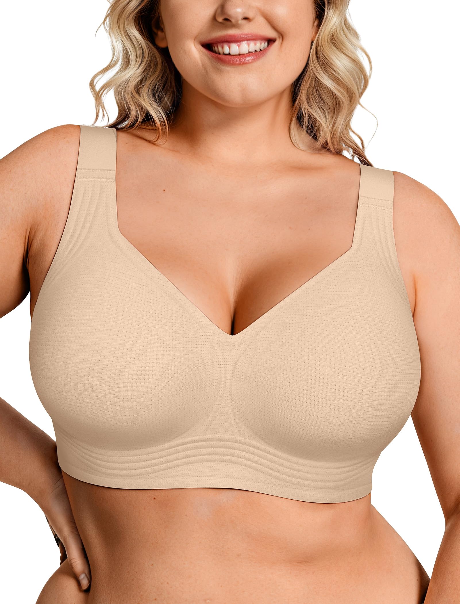 Full Coverage Bras No Underwire - The V neck Bras Designed with no wire to provide a natural relaxed fit while offering great support through 360° jelly bands, ensuring all day comfort. Lightweight bras keep skin cool and dry. The widened elastic band stays securely in place without rolling or shifting, ensuring stability during movement. A perfect combination of freedom and support for everyday wear.