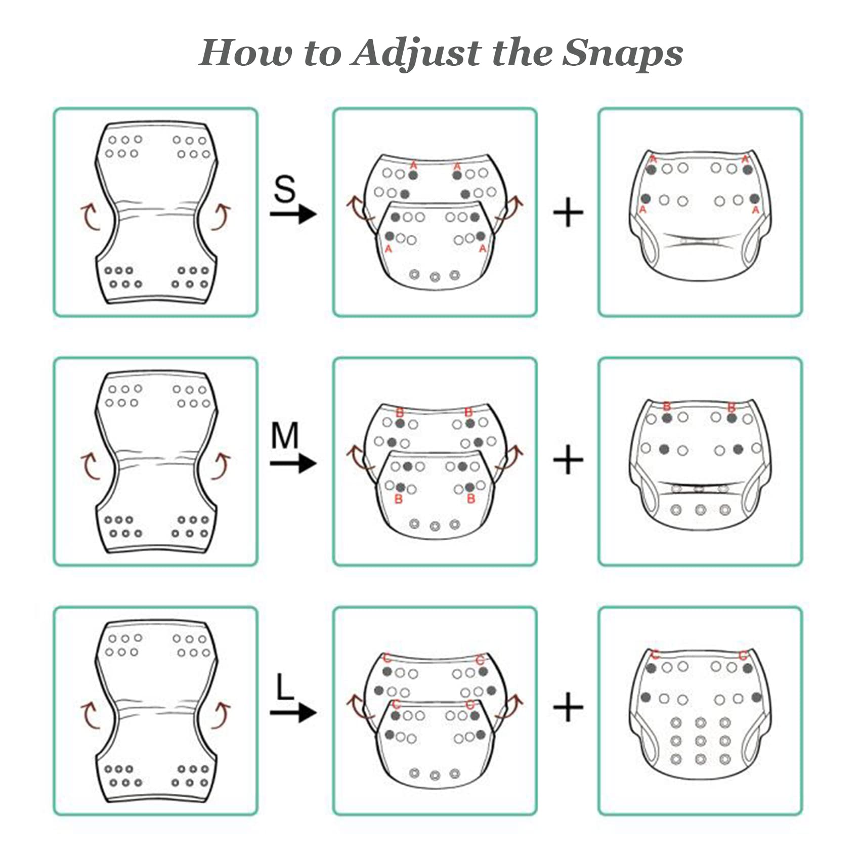 2 Sizes fit for 0-8M Babies or 8M-3T Toddlers: Babygoal reusable swim diapers have small size and large size, which are suitable for babies 0-8M and 8M-3T. They have adjustable snaps and grows with your little one. If your baby is less than 8 months and thin, we suggest you choose small size.