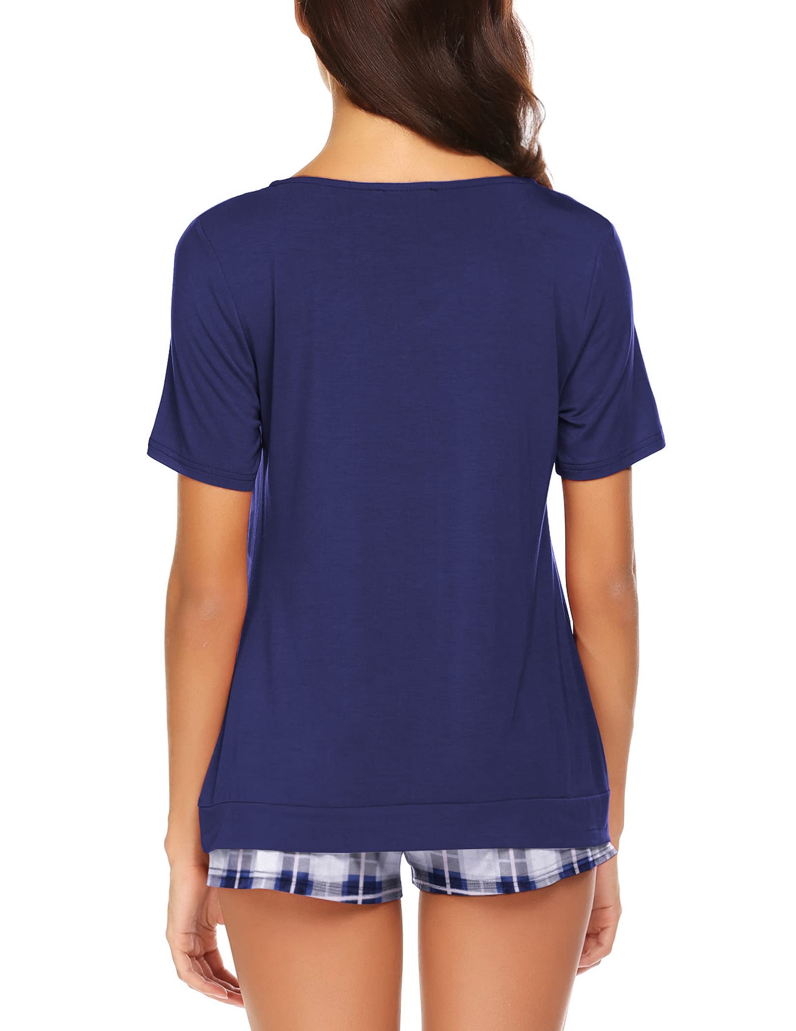 This soft pajama top features V neck, short sleeve, pleated front neckline,and the comfy modal pajama shorts is designed with elastic waist, drawstring and thigh-length