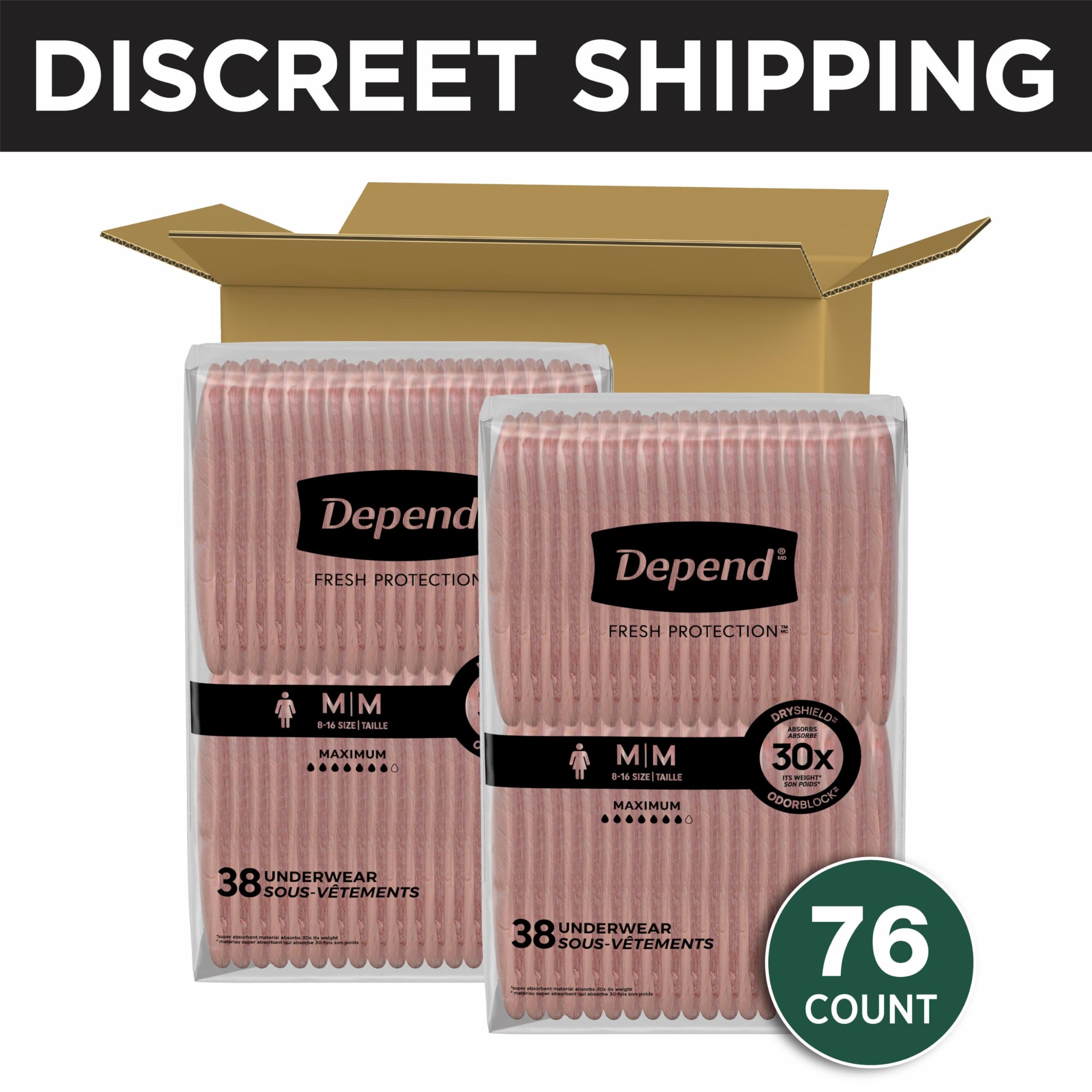 DEPEND FRESH PROTECTION: 76 count of Depend Fresh Protection Adult Incontinence & Postpartum Bladder Leak Underwear for Women (2 packs of 38), size medium (31–37" waist)