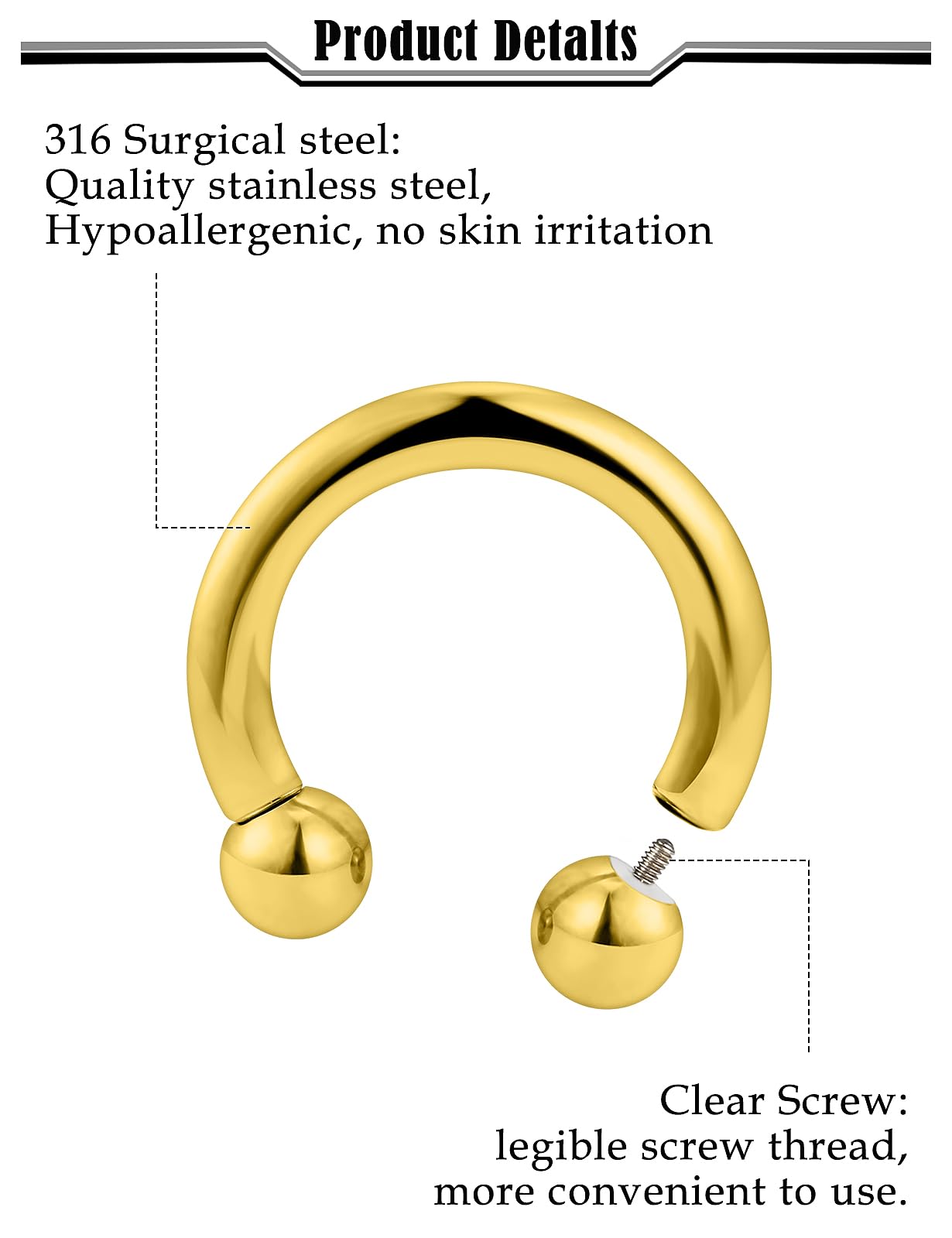 Horseshoes Captive Bead Rings Made of 316L Surgical Steel,High Qaulity.Non Nickel and Non Lead,Safe and Health for Body, Comfortable to Wear.