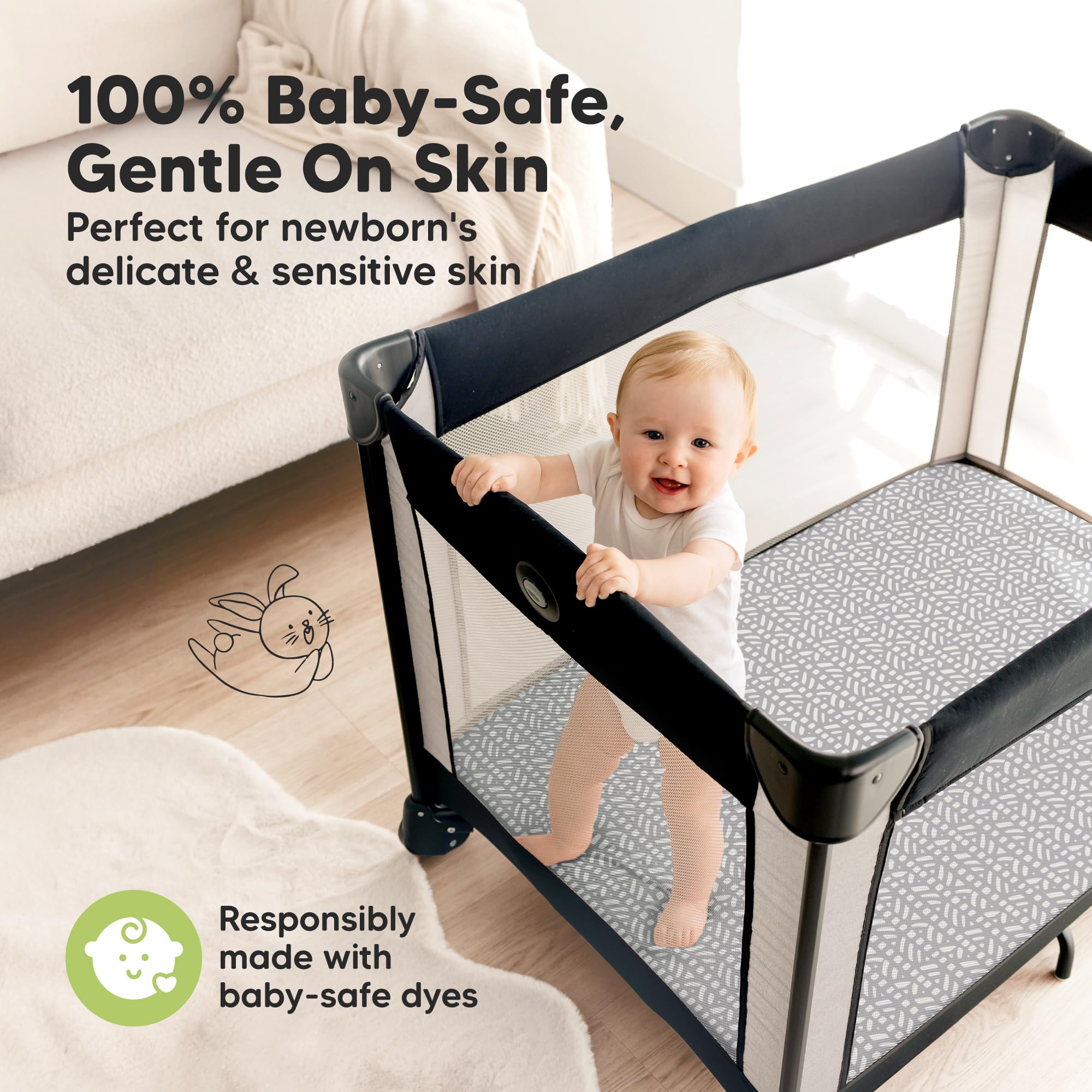 Durable & Lasting - These pack and play sheets are durable, machine-washable, and dryer-friendly, one of the must-have modern baby essentials for newborns, infants, and toddlers.