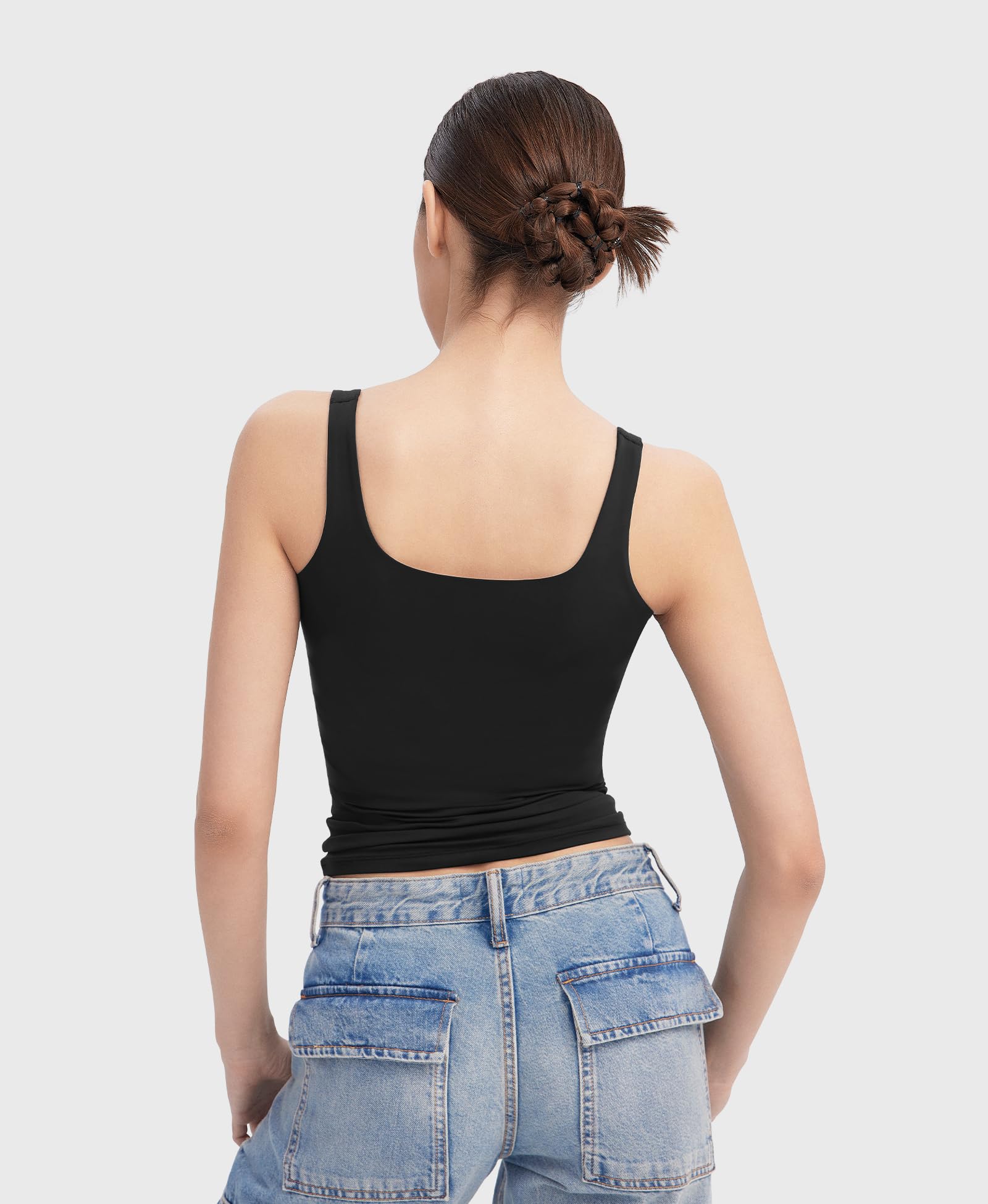 Double Lined Fabric: Our tank top for women boasts a double-layered fabric that guarantees both opacity and optimal breathability in hot summer. With its high elasticity and soft, skin-friendly fabric, you'll revel in unparalleled comfort and unrestricted movement.