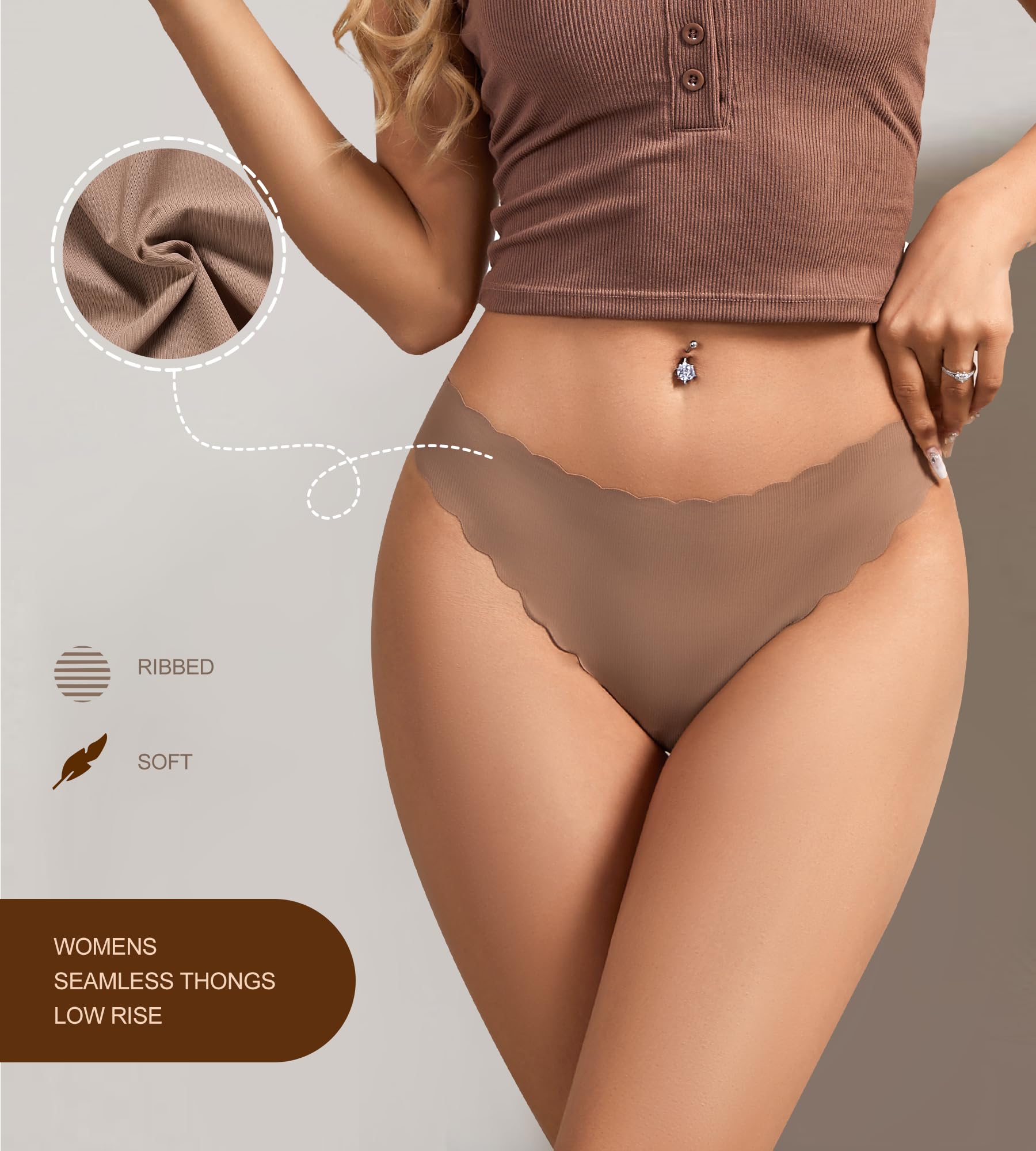 ❤【Comfortable Ribbed Material】 The womens seamless thongs is made with 90% nylon and 10% elastane ribbed material, which is simple, delicate, and stylish. SHARICCA seamless underwear is smooth, silky, and soft to the touch, providing a cool and breathable wearing experience.