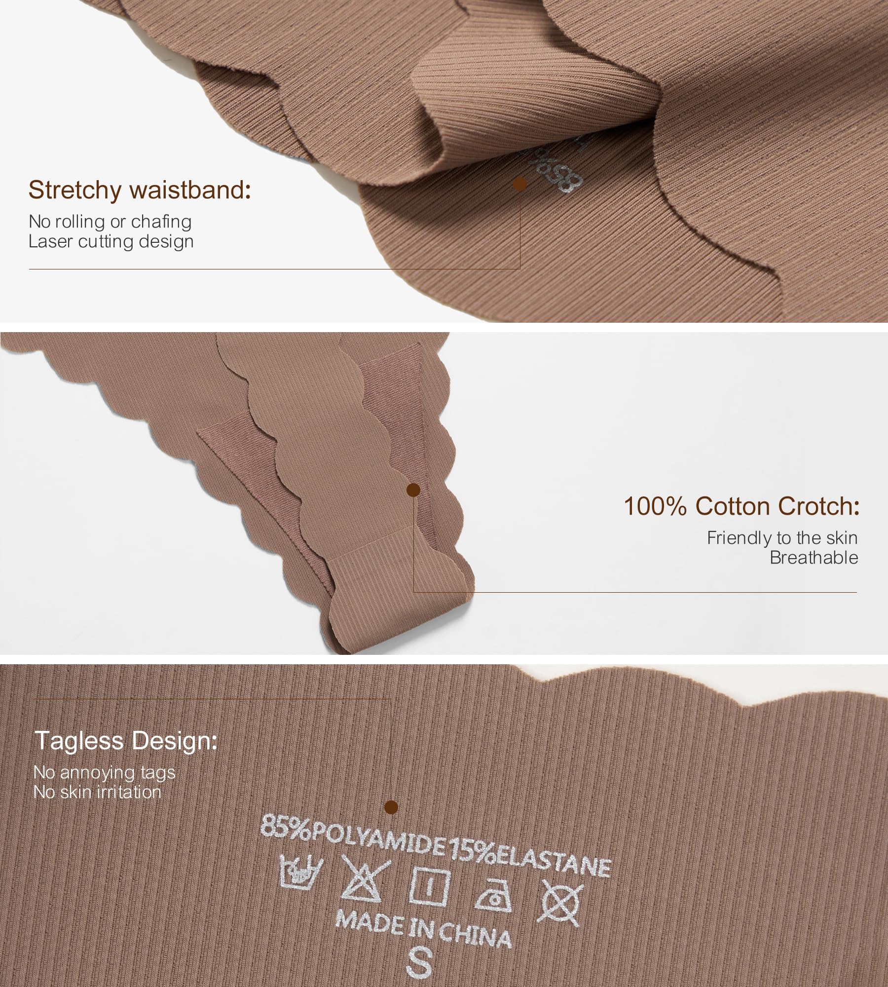 ❤【Wave Edge Seamless Underwear】The delicate laser cutting on fabric makes the underwear is invisible and no show without any panties lines under clothes. No show thong underwear with wave edge will reduce the coverage and show the hip curves, lovely and sexy.