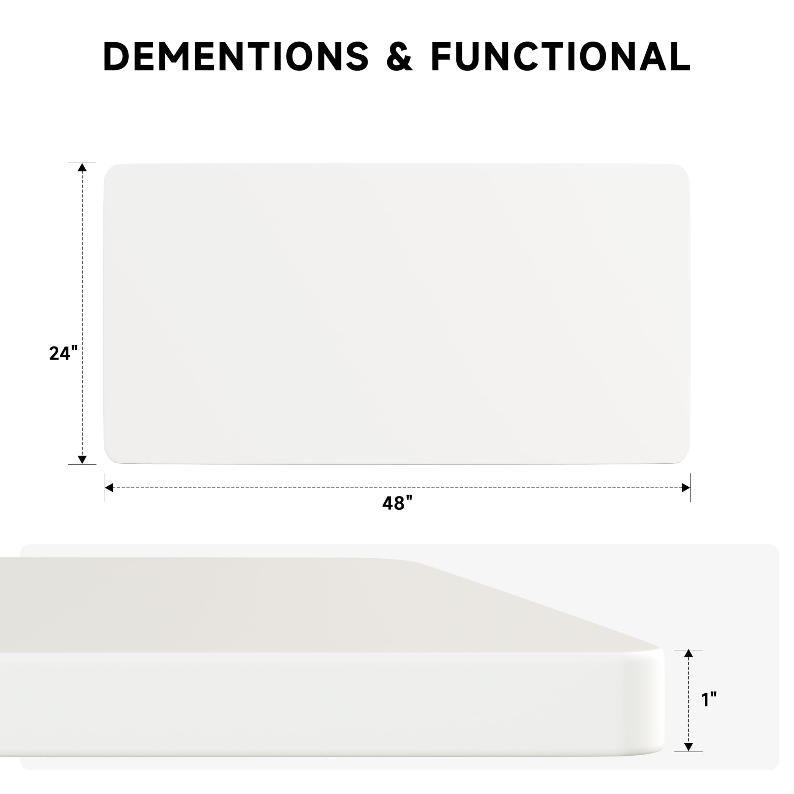 HIGH-QUALITY: The 48x24x1-inch whole piece particle board desk top is more stable and durable than the spliced board. It has no splicing gaps, avoids the risk of adhesive aging, and evenly disperses the pressure; the wood fiber is continuous, the strength is stable, and the impact resistance is strong; it is also moisture-proof, anti-corrosive, and wear-resistant, and it is more quality-assured when used for furniture and decoration