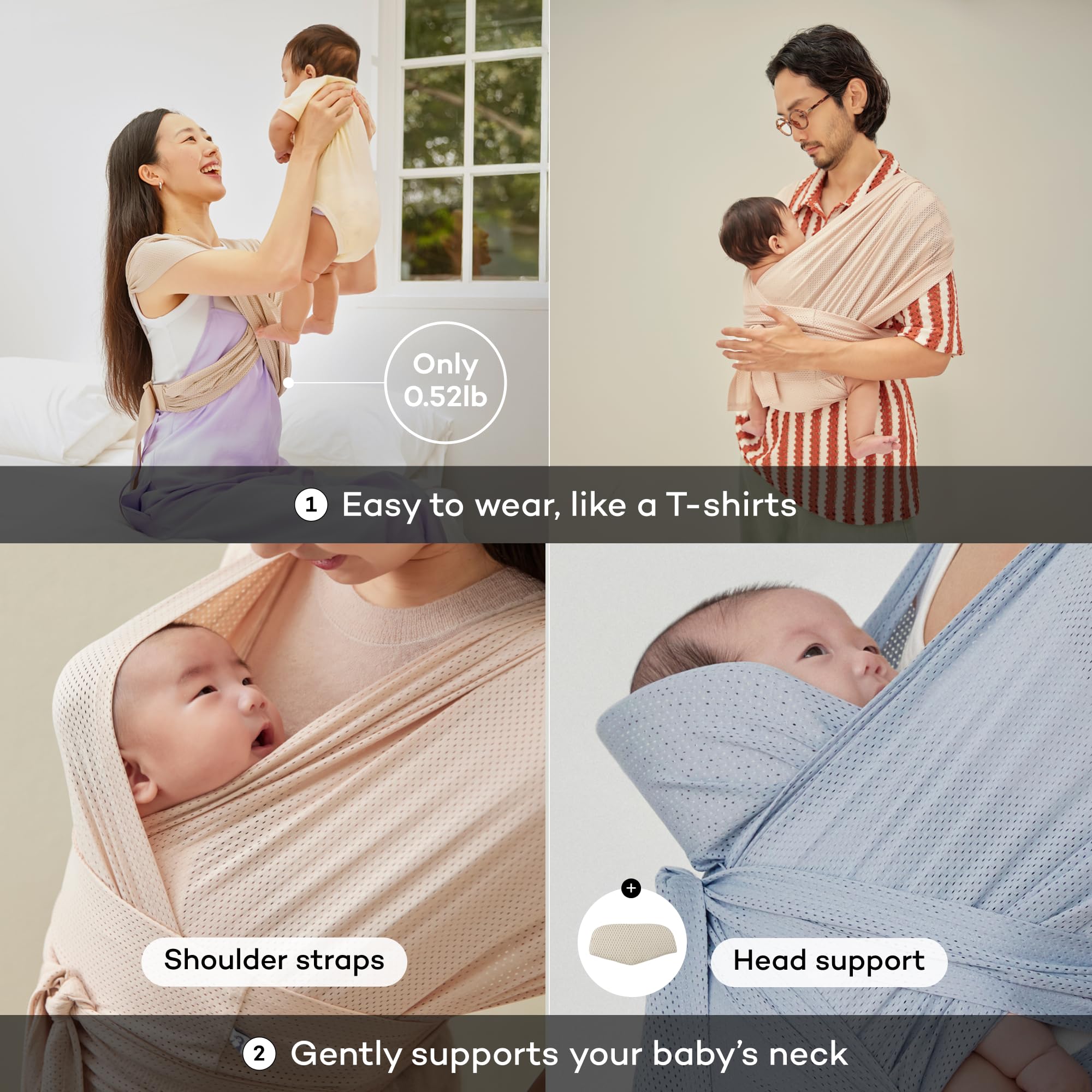 EASY TO WEAR: This breathable baby wrap is designed to be easy to wear, with no tying to rings, using a simple t-shirt-like design. Itβs not any trouble putting on this pillowy soft baby carrier. Just slip it on over your head, secure your newborn, adjust accordingly, and hold them close.