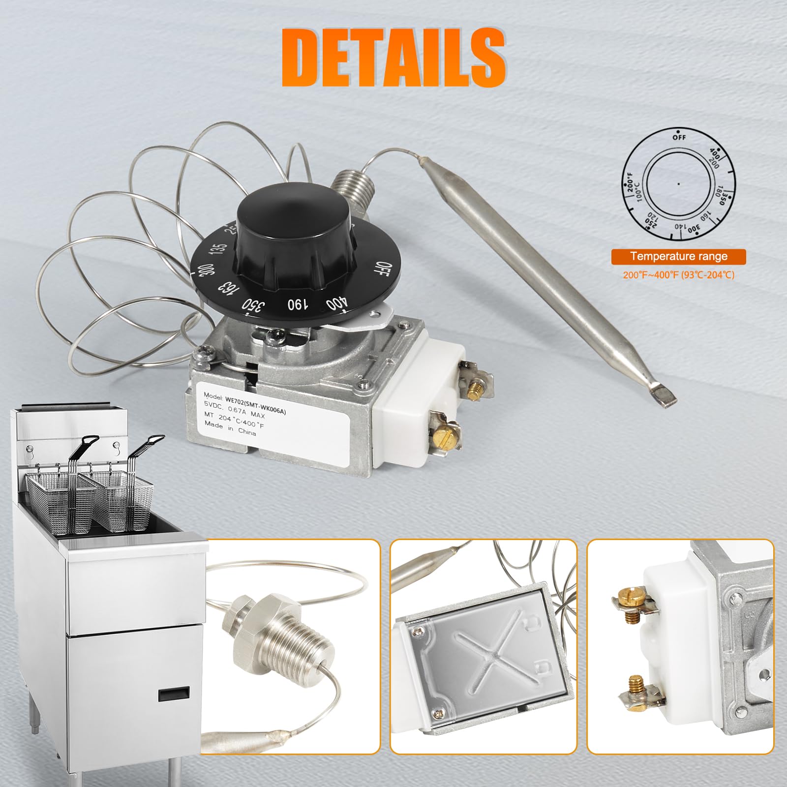 SAFETY RELIABILITY: Our 60125401 thermostat works on millivolt systems, protects your fryer while allowing better control of oil temperature( 200ºF~400ºF ). If you are not 100% satisfied with our products please feel free to contact us, we will reply to you within 24 hours