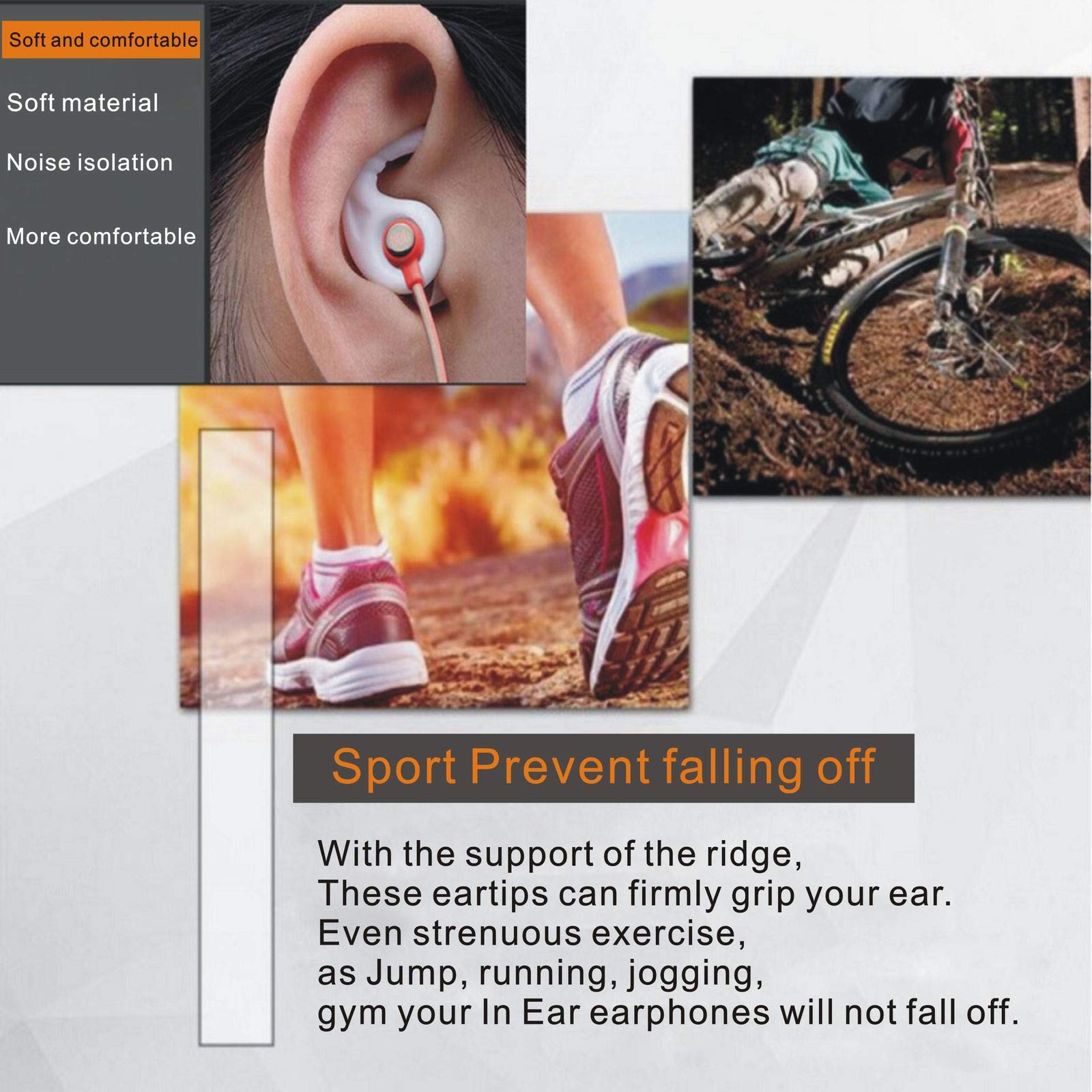 【Perfect Design】With the support of the ridge, these ear fin and wing can firmly grip your ear. even strenuous exercise, your In ear earphones will not fall off. so soft material, wearing it for a long time or being squeezed, will not hurt your ears.