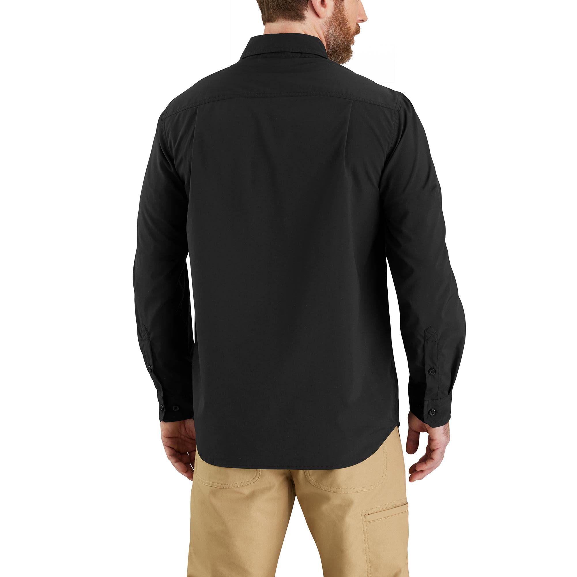 Description A comfortable go-to for hot days. This men's Carhartt button-down shirt fights sweat, resists odor, and dries fast. Lightweight chambray fabric with UPF 50+ adds extra defense when it's sunny out. Shoulder pleats give you room to move with ease.