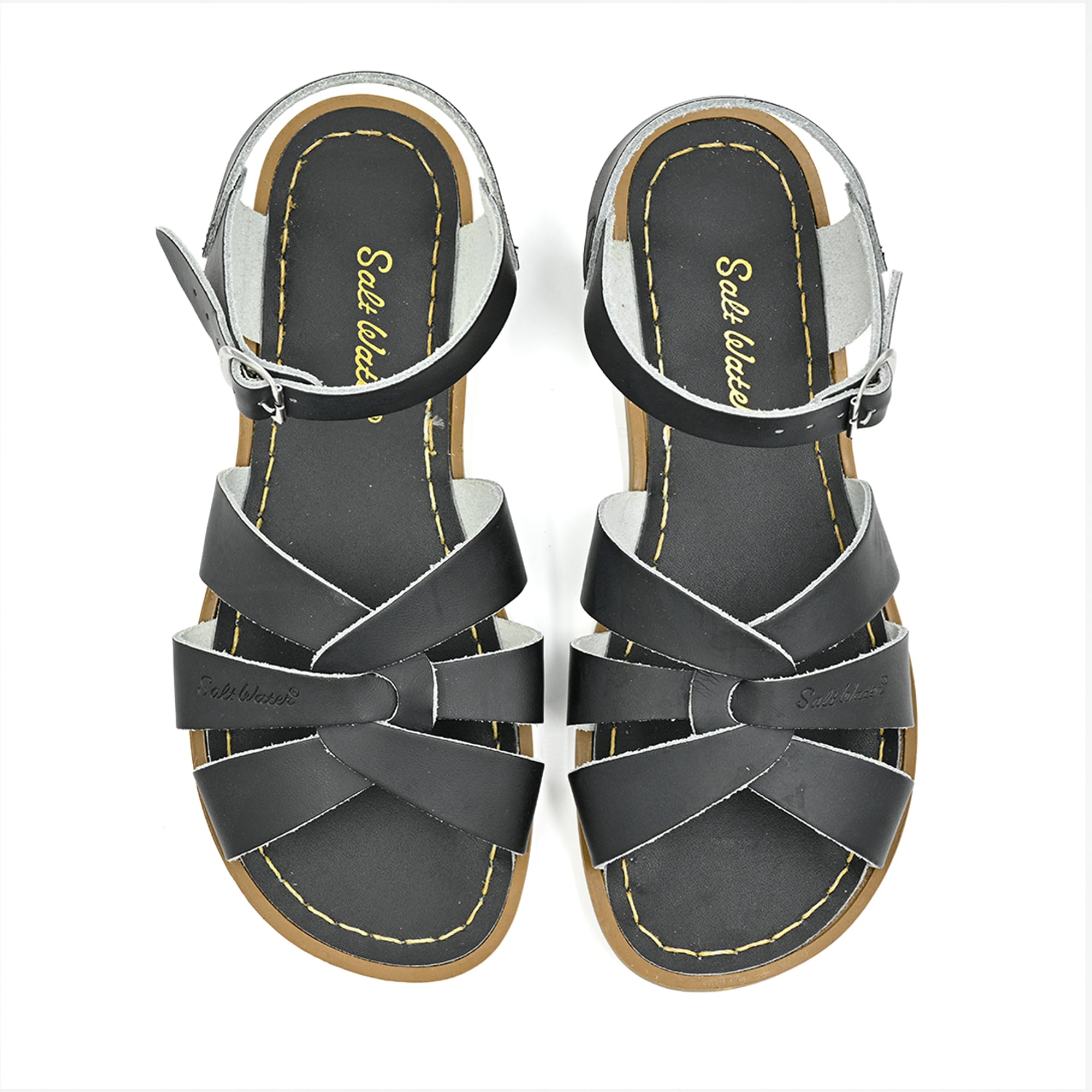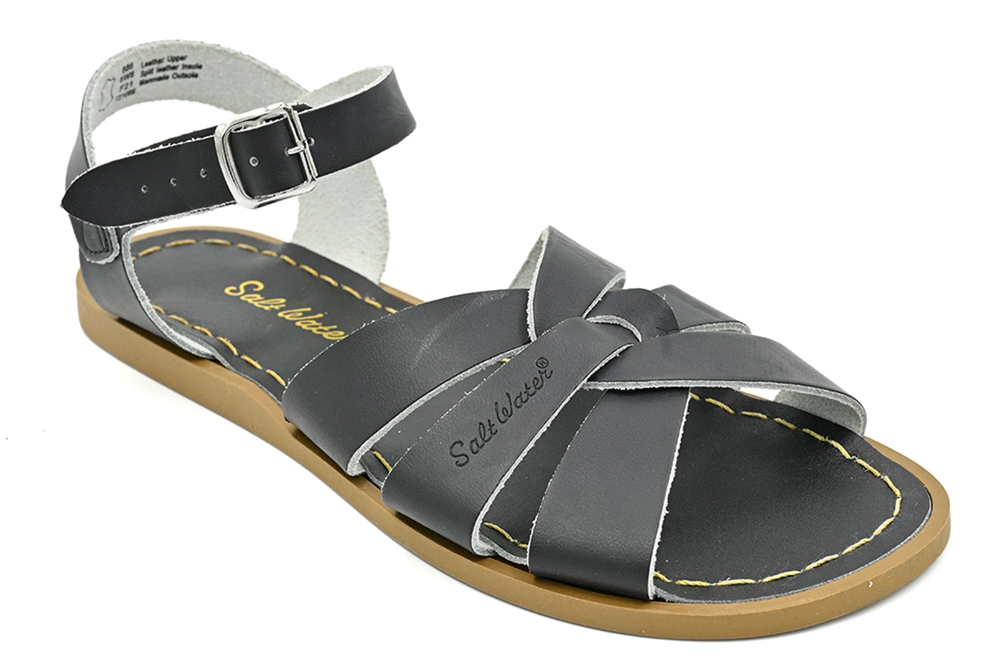 Description Product Description Salt Water and Sun-San sandals are now American classics worn by fashion-forward people around the world. Amazon.com For sunny days and aquatic fun, The Original Salt Water sandal by Hoy is a must. This braided offering in water-friendly leather can be worn in or out of the drink so your good time doesn't stop to worry about ruining the shoes. A buckled ankle strap keeps The Original in place so you don't have to worry about their falling off, either.