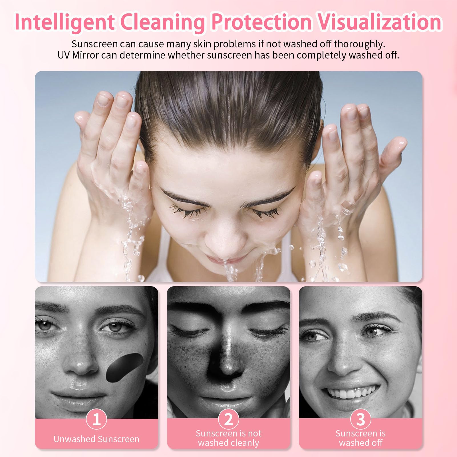 UV Camera for Sunscreen Test Visualize and Intelligent Touch Control: Without proper sun protection, your skin can get sunburned, enlarged pores, spots, and wrinkles appear. The UV mirror for sunscreen test is equipped with a touch switch to easily control the UV display on and off. Through the high-definition screen of the UV camera sunscreen that visualizes sun protection, you can clearly see the invisible sunscreen applied on your face, helping you to apply the sunscreen more evenly on your face, which can perfectly protect your skin from UV damage, allowing you to has charming wheatish complexion