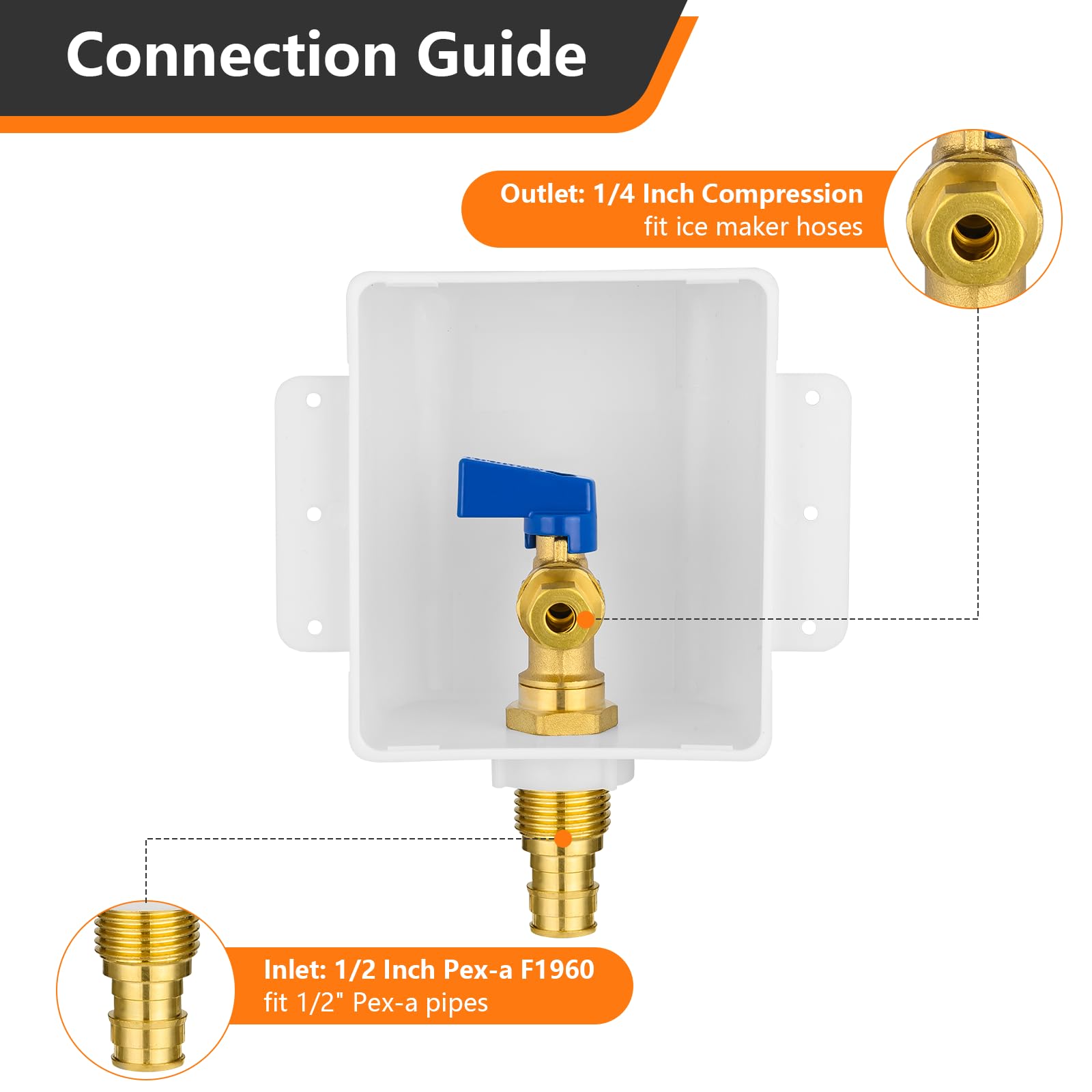 PIPE COMPATIBILITY:Outfitted with a 1/2 inch Pex-A expansion f1960 Inlet & a 1/4 inch OD compression Outlet.