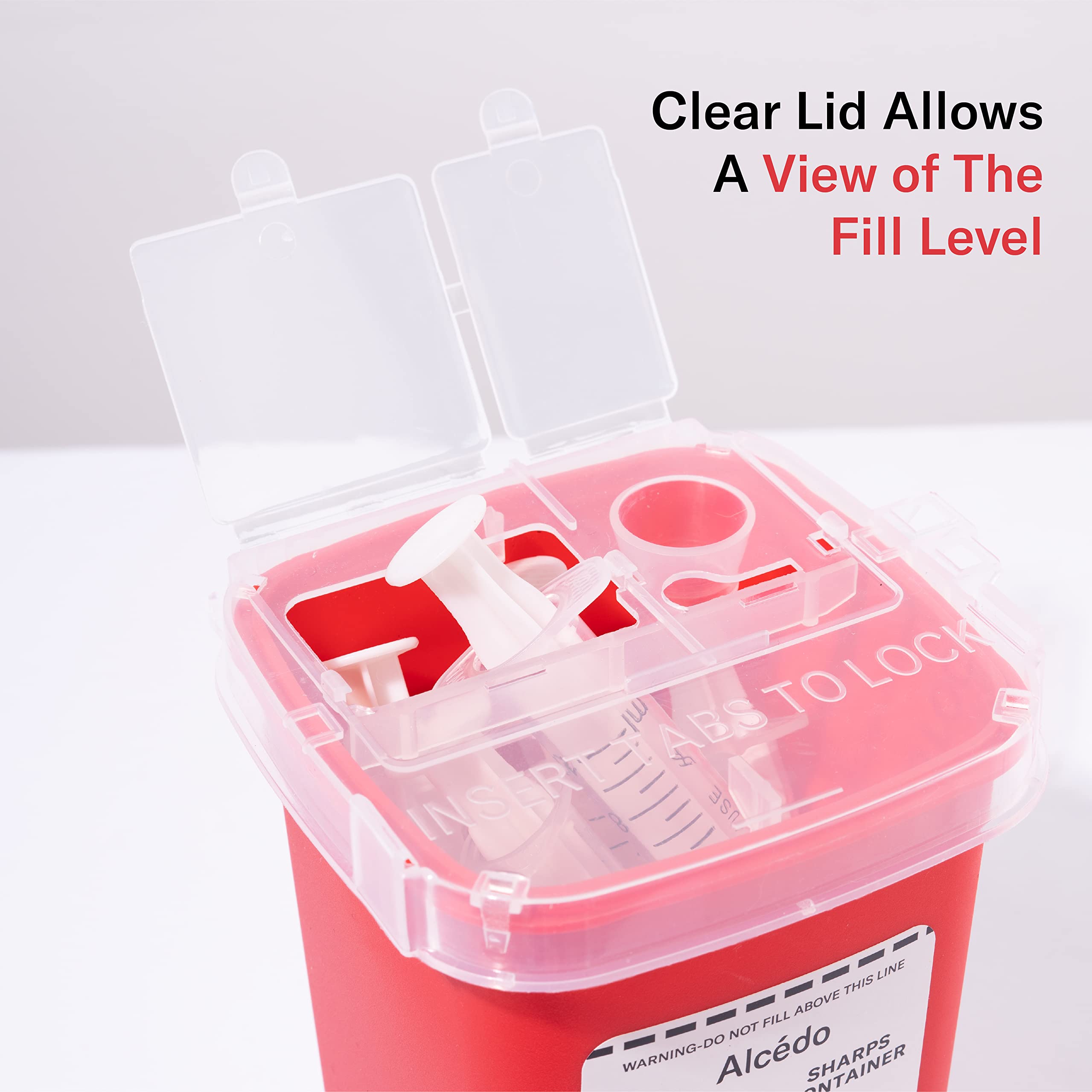 EASY TO USE – The built-in needle removal port designed to remove needles from syringe. Clear lid allows a view of the fill level, temporary closure for safety, and snap locks for final disposal.