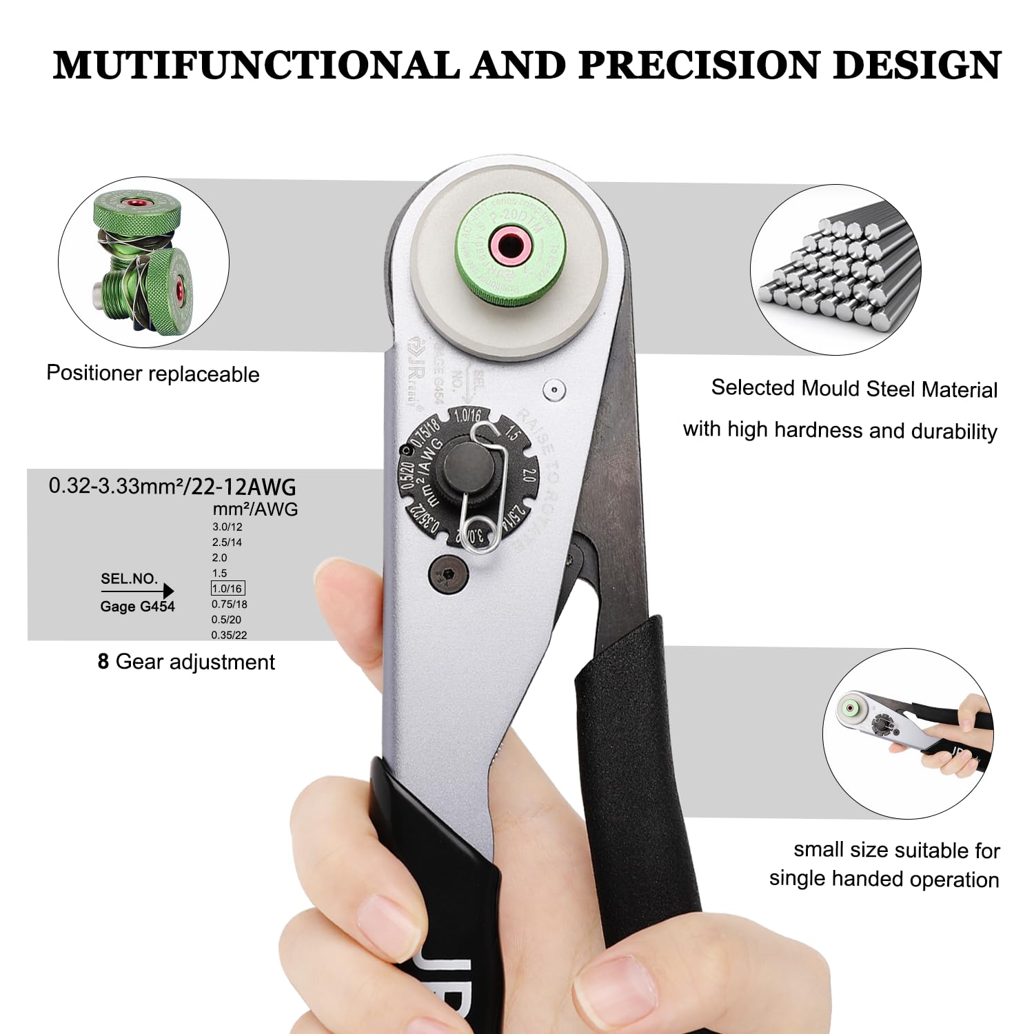 【8 INDENT HAND TOOL】ACT-HDT-16DT designed for crimping Size 16 solid style pins and sockets in the DT Series, With ratchet mechanism and 12-22 AWG 8 gear adjustable, ensures precise and secure crimps.