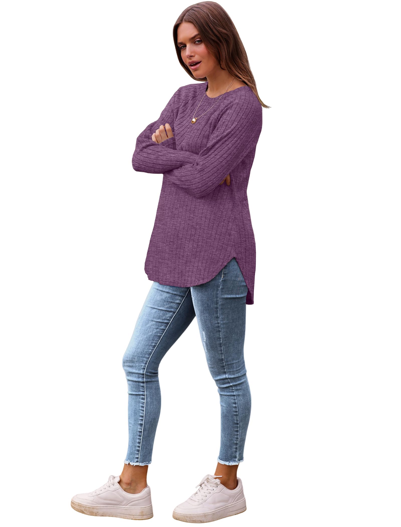 ✦Classical & Unique Design: This tunic features Crew neck,Curved Hem,high low side split design, basic solid color,loose fit,tunic tops,length enough to cover your hips,hide your belly. The classic solid color adds a timeless appeal, while the gracefully curved hemline adds a feminine touch.