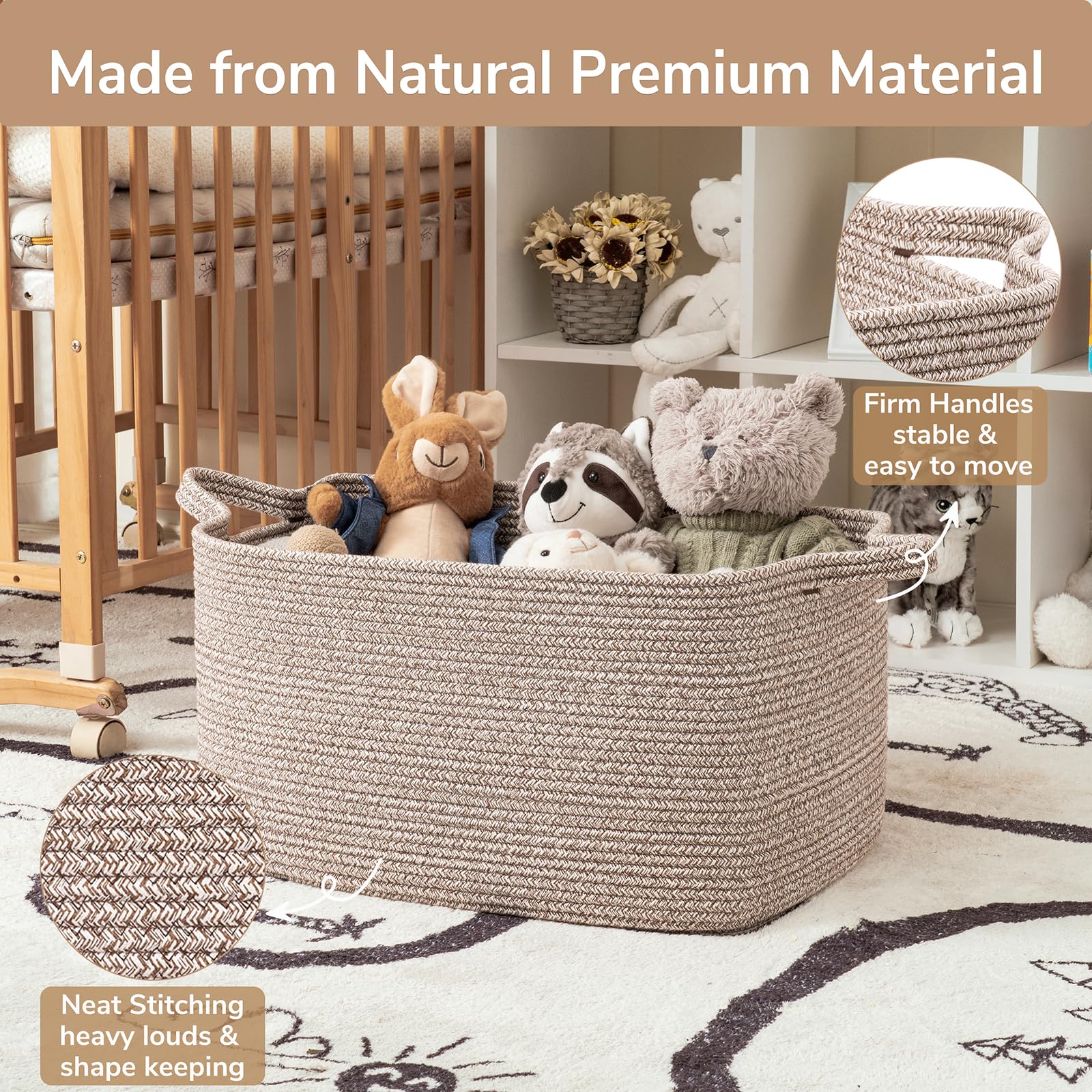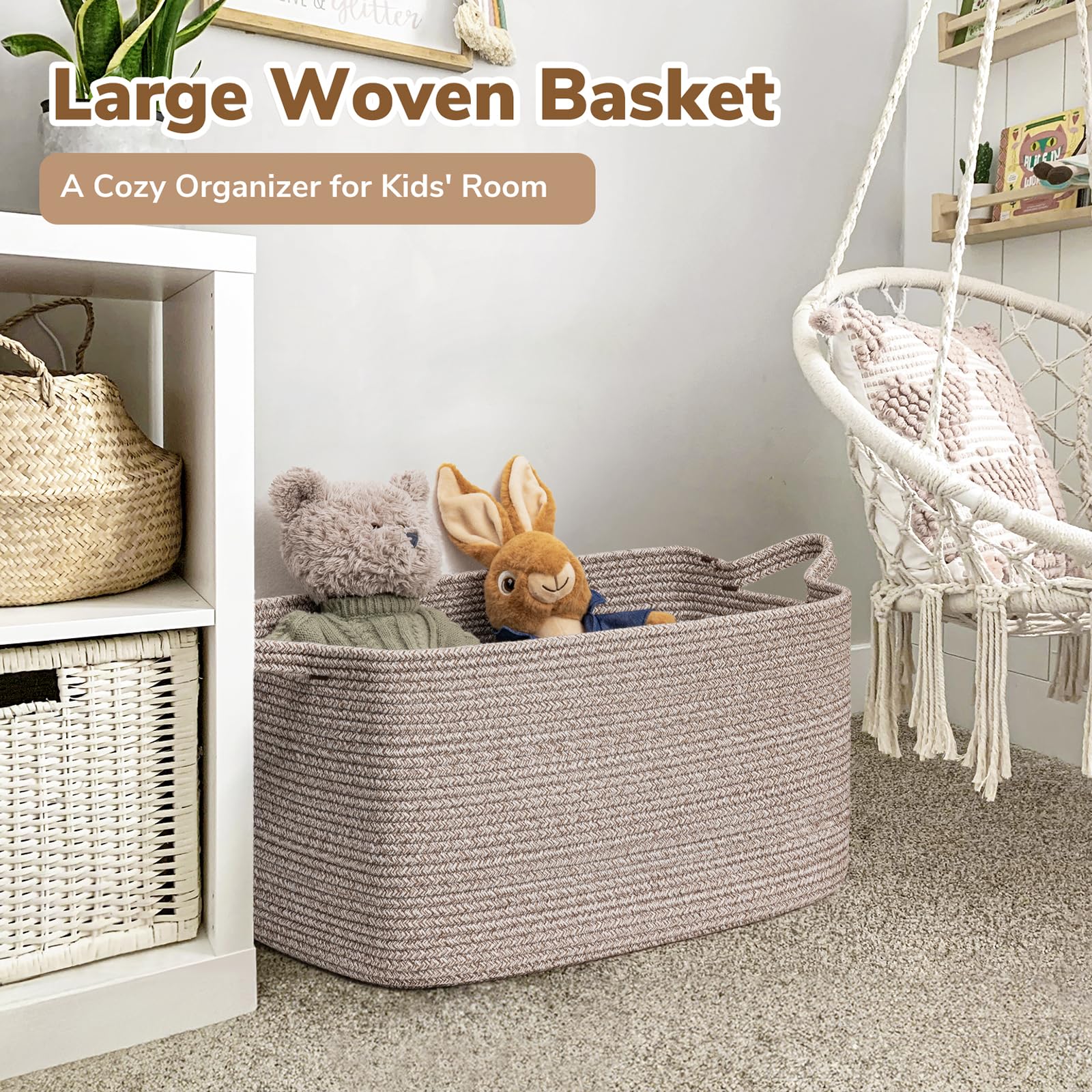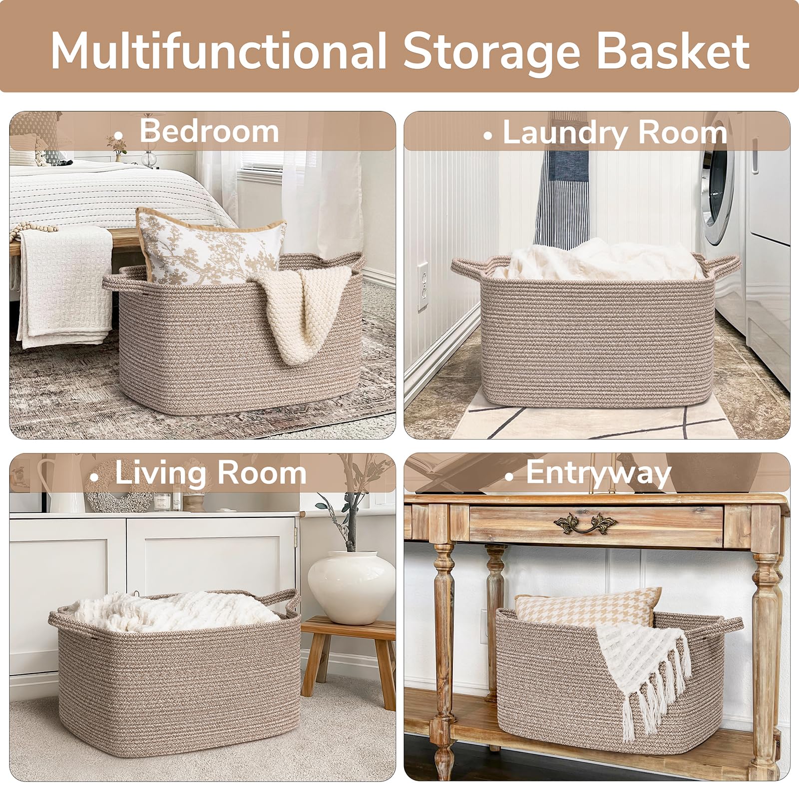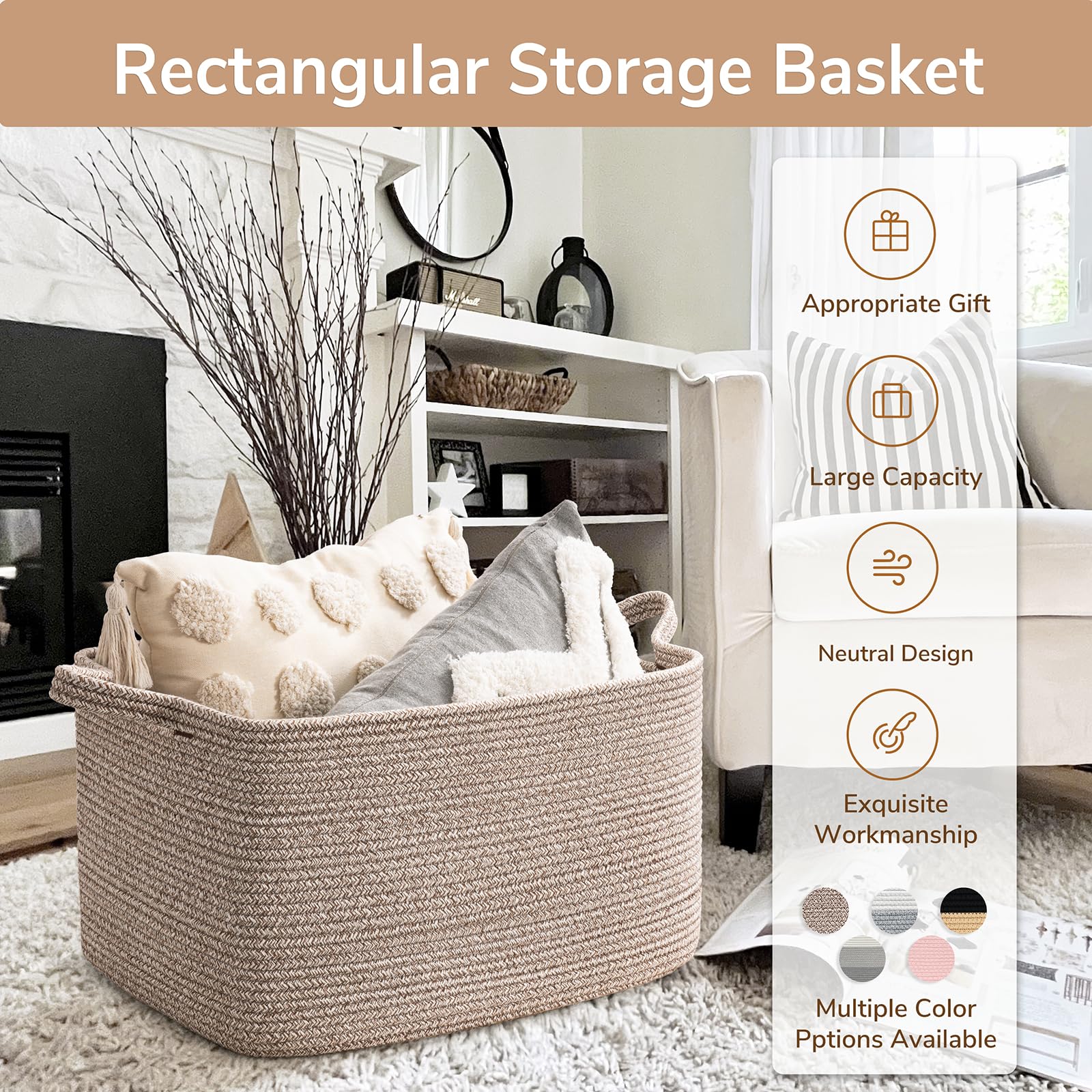 Goodpick Large Woven Storage Basket, 21.6" x 14.9" x 11.8" Blanket Basket for Living Room, Bedroom, Rectangle Rope Storage Organizer for Clothes, Toys, Brown
