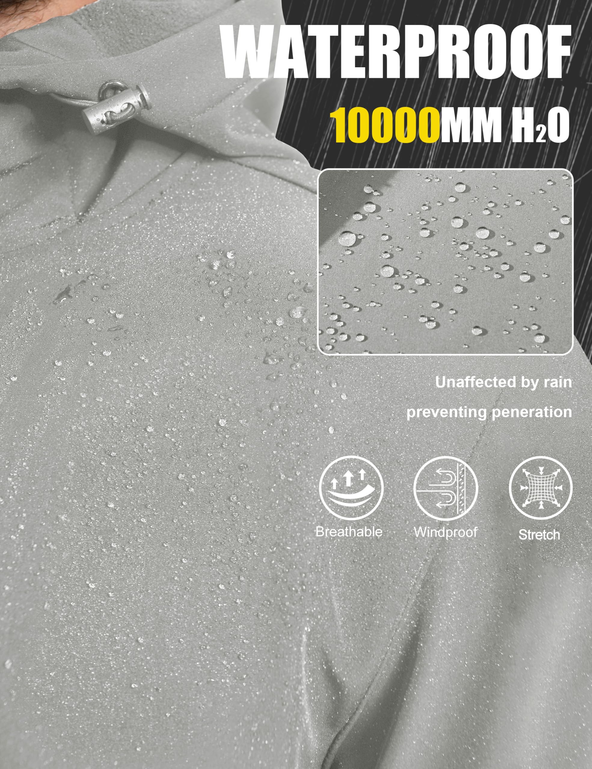 WATERPROOF & BREATHABLE - Men's rain jacket with hood is made of upgraded waterproof and breathable fabric with 10000mm H2O water repellency and 5000g/m2/24Hr breathablility, keeping you dry and comfortable, freeing you of walking in rain and snowflake