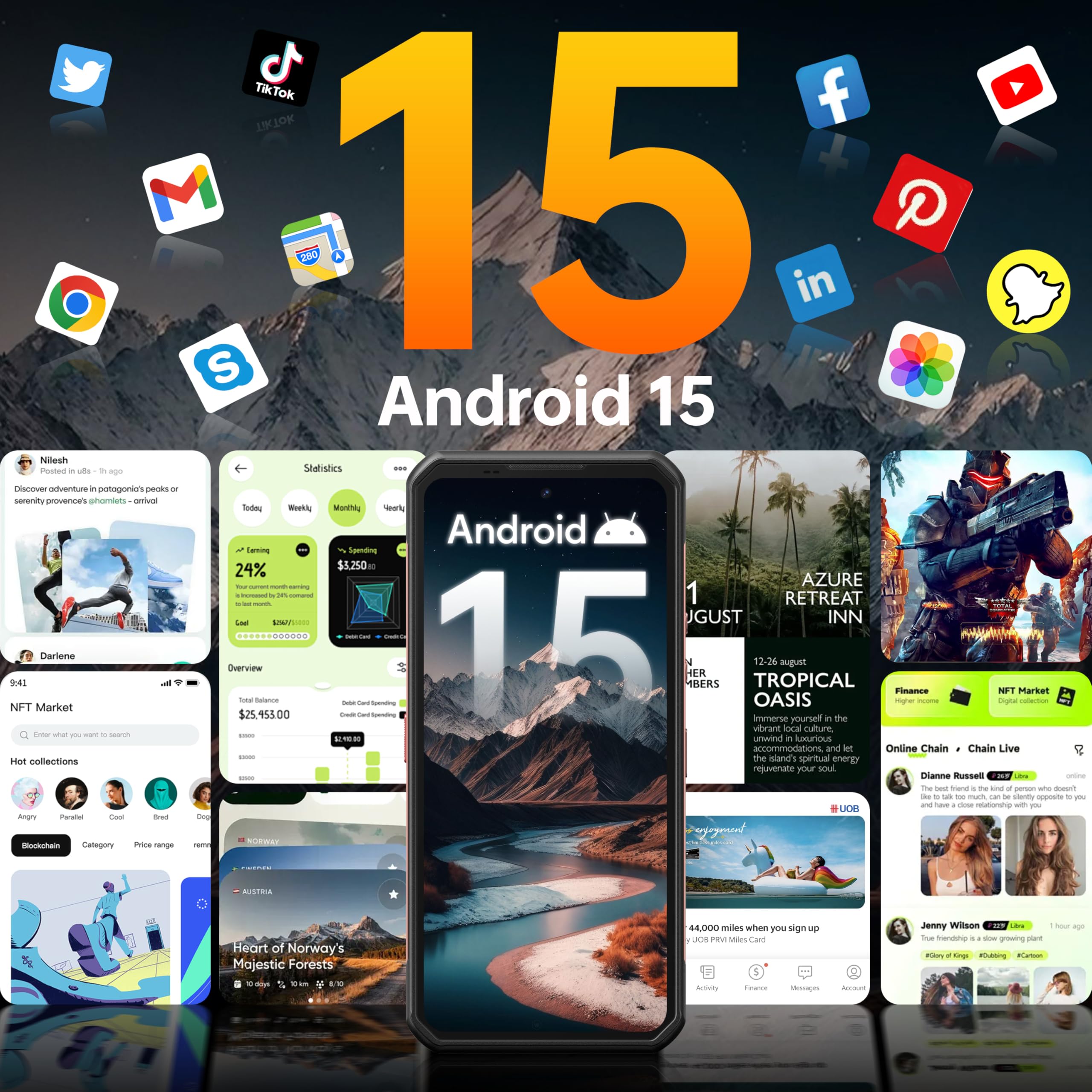 [Android 15 Rugged Phone]This OUKITEL WP300 rugged phones harnesses Android 15 optimized performance and AI efficiency for lightning-fast responsiveness and smarter operation. Tackle demanding multitasking and harsh environments with extended uptime, thanks to superior resource management. Robust privacy controls keep your critical data secure off-grid or on tough job sites. Experience smoother transitions, reduced lag, and maximized battery life through its streamlined architecture