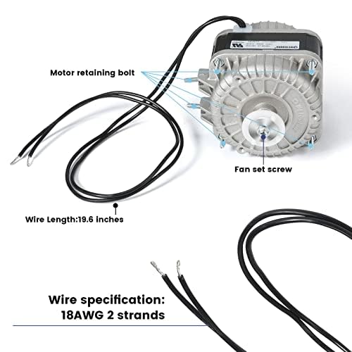 Connecting wire: Motor has two leads, specification 18AWG, UL certification, line length 19.68-21.65 inches, used to connect the two poles of the power supply, motor housing grounding wire