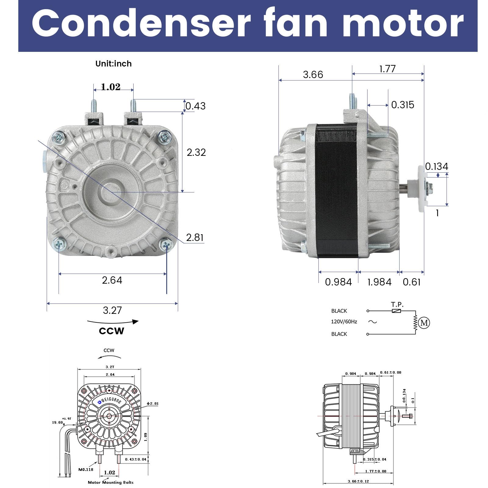 Installation Mode:YZF18-25 motor mounting pin spacing is 0.709 inches,it needs to be mounted horizontally or vertically with mounting brackets,the motor rotates counterclockwise