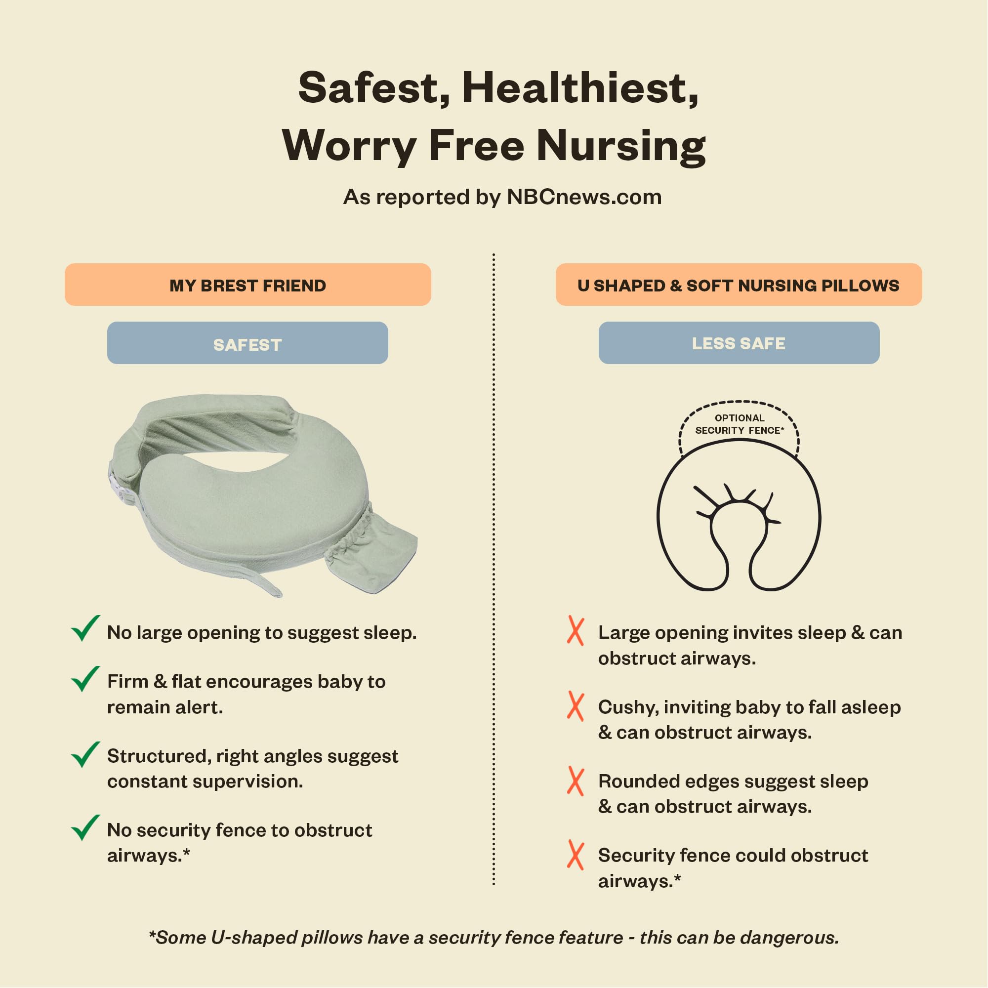 COMFORT W/ EXTRA-THICK CUSHION: Our nursing feeding pillow features an extra-thick cushion that provides comfort, firm & flat support. The design eliminates the gap found in crescent & U-shaped pillows, ensuring a connection between you & your baby during feeding time. Our nursing pillow offers security, making each feeding session a worry-free bonding experience.