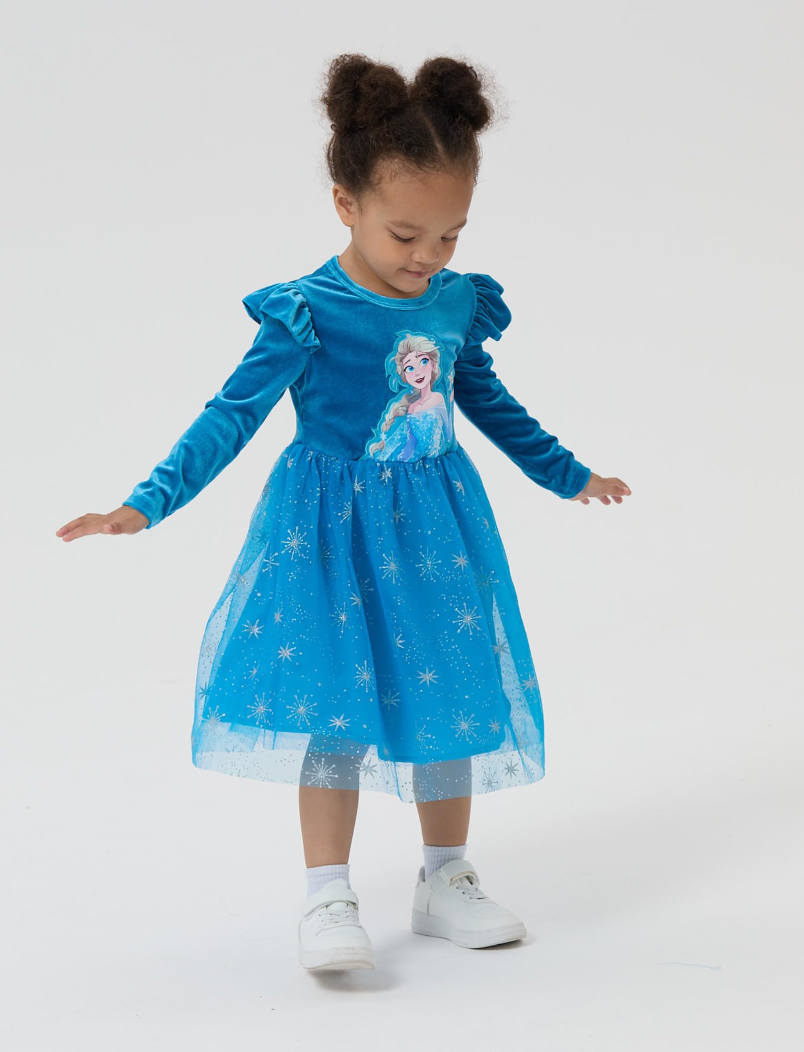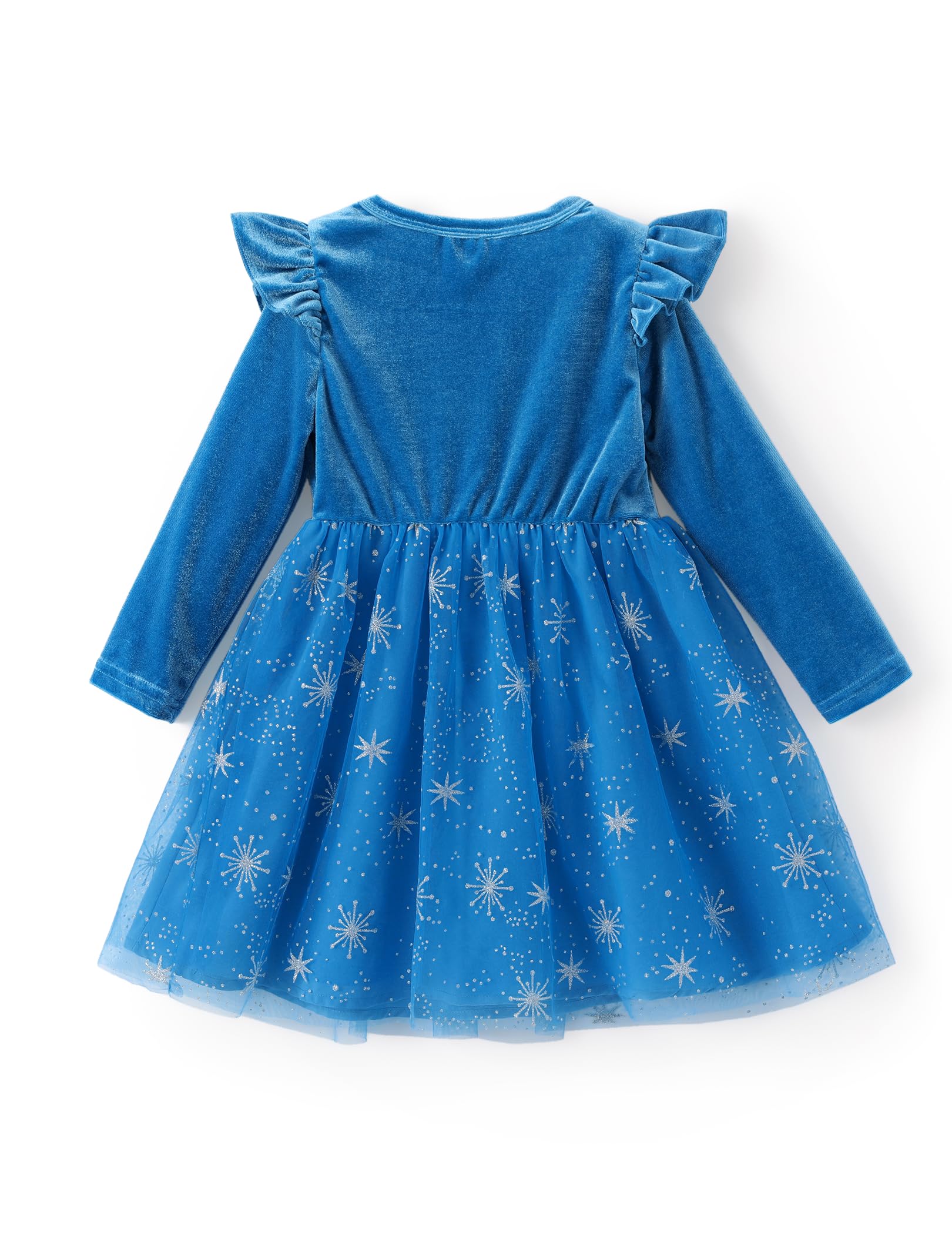 Disney Officially Licensed Toddler Elsa Dress: Celebrate the holidays in this officially licensed Disney Elsa dress, a festive winter favorite for toddlers. With its rich sapphire blue color and shimmering snowflake mesh, this Frozen toddler dress brings joyful style to birthdays, Christmas, and everyday dress up. Whether you're looking for a toddler Elsa dress, an Elsa costume for girls, or Frozen birthday outfit ideas, this dress is a charming choice for any Frozen fan