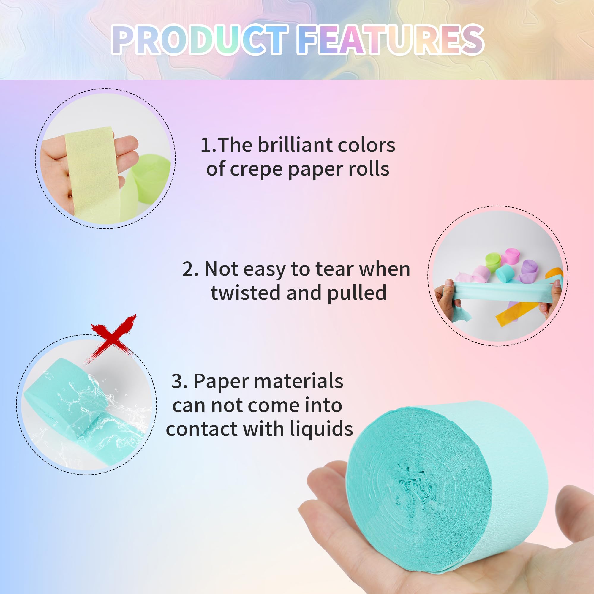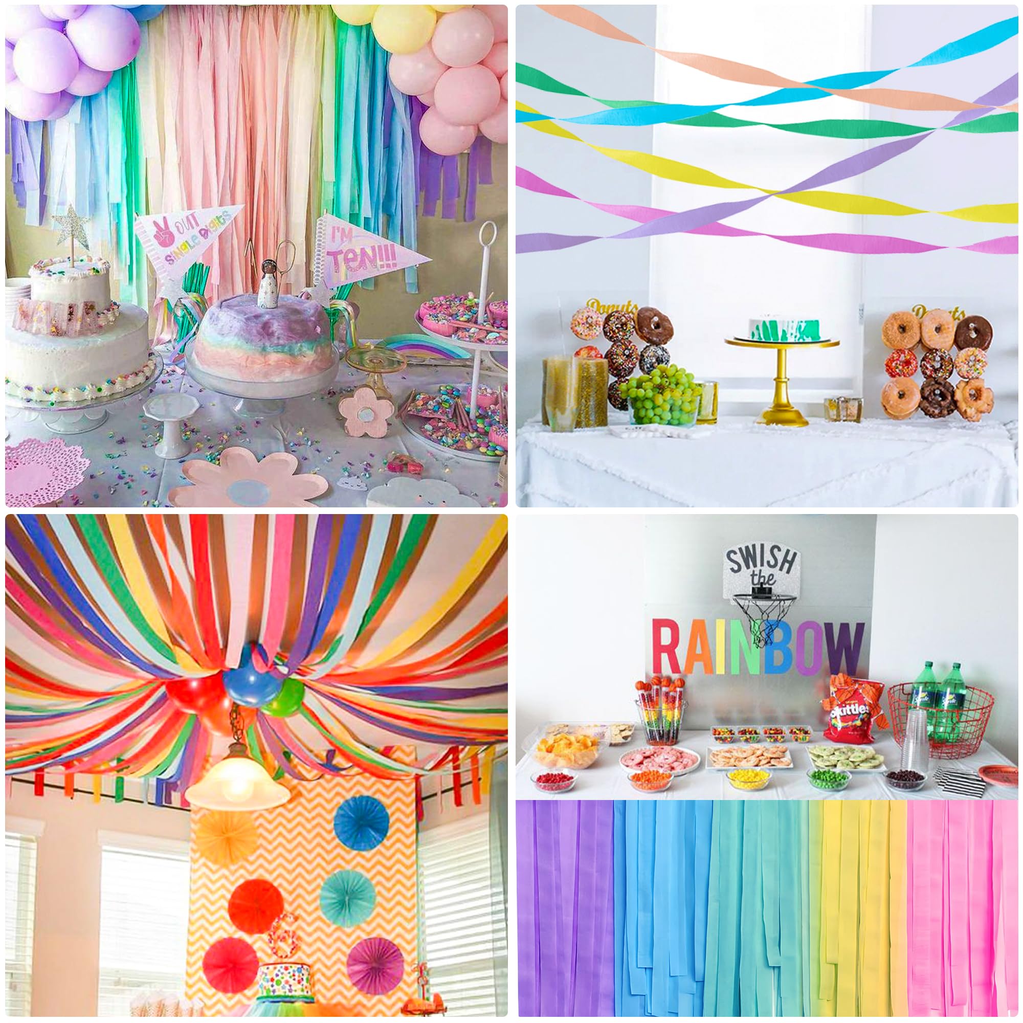 Party Decoration: Crepe paper streamers party supplies are suitable for decorating birthday party, rainbow party, pastel party, mermaid party, candyland party, ice cream birthday party, rainbow first birthday party, wedding, baby shower, graduation party, bachelorette party, bridal shower, etc.