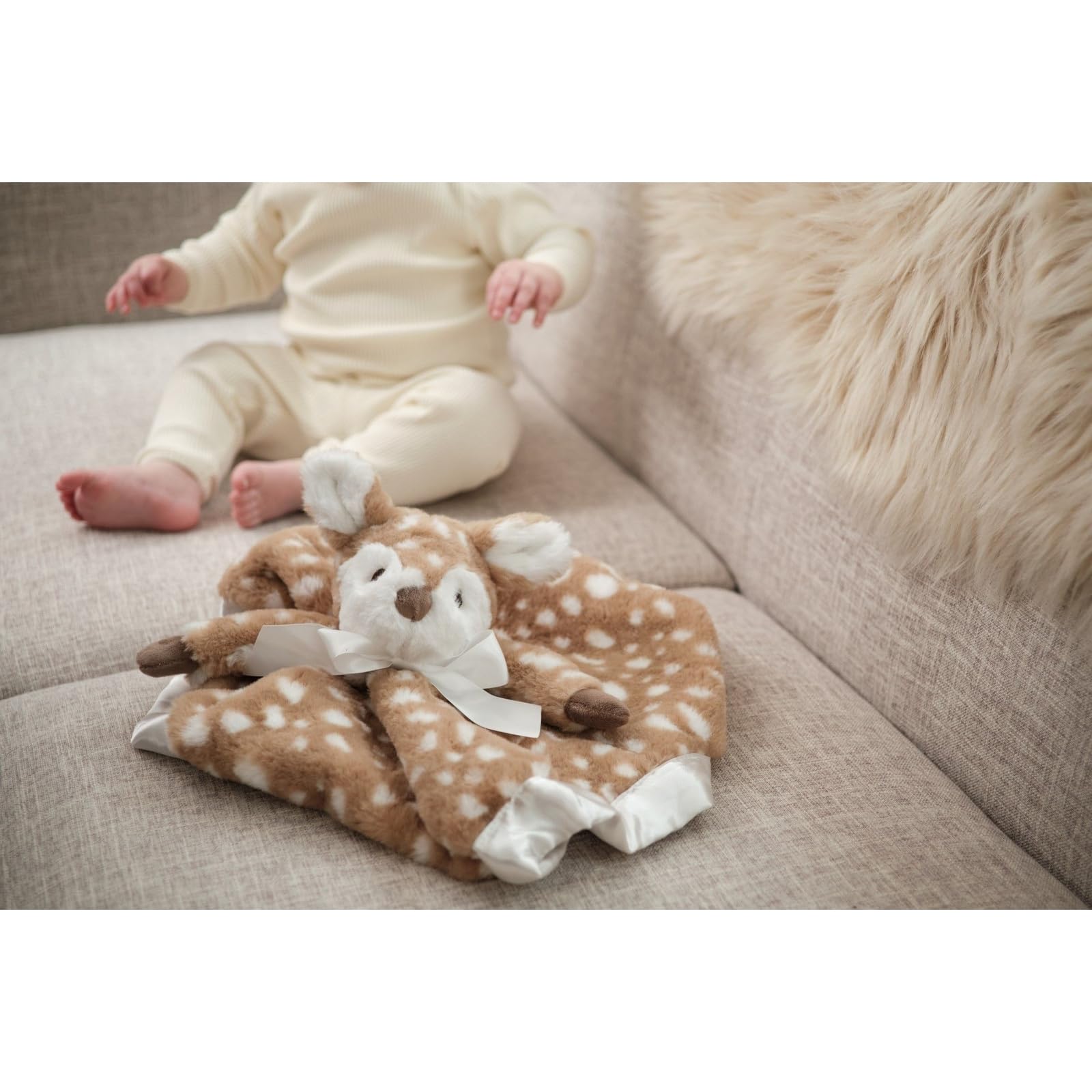 LIL' WILLOW SNUGGLER LOVEY: This is the perfect companion for your little one's precious moments at home. This premium velour Fawn Plush Stuffed Animal Security Blanket measures 15", offering a delightful blend of cuddles and comfort. Crafted with love, it's an ideal lovey that reassures and soothes your baby. The machine washable design ensures easy care and brings joy to both babies and parents.