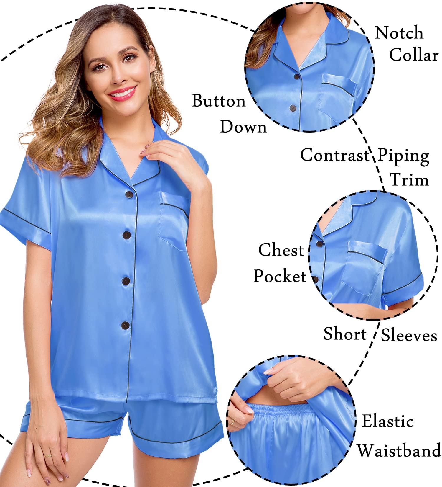 Tips: Please check the size information in the left image or under the product description before ordering. We offer newest updated design and satisfied service and please feel free to contact us if you have any problems about our short sleeve sleepwear.