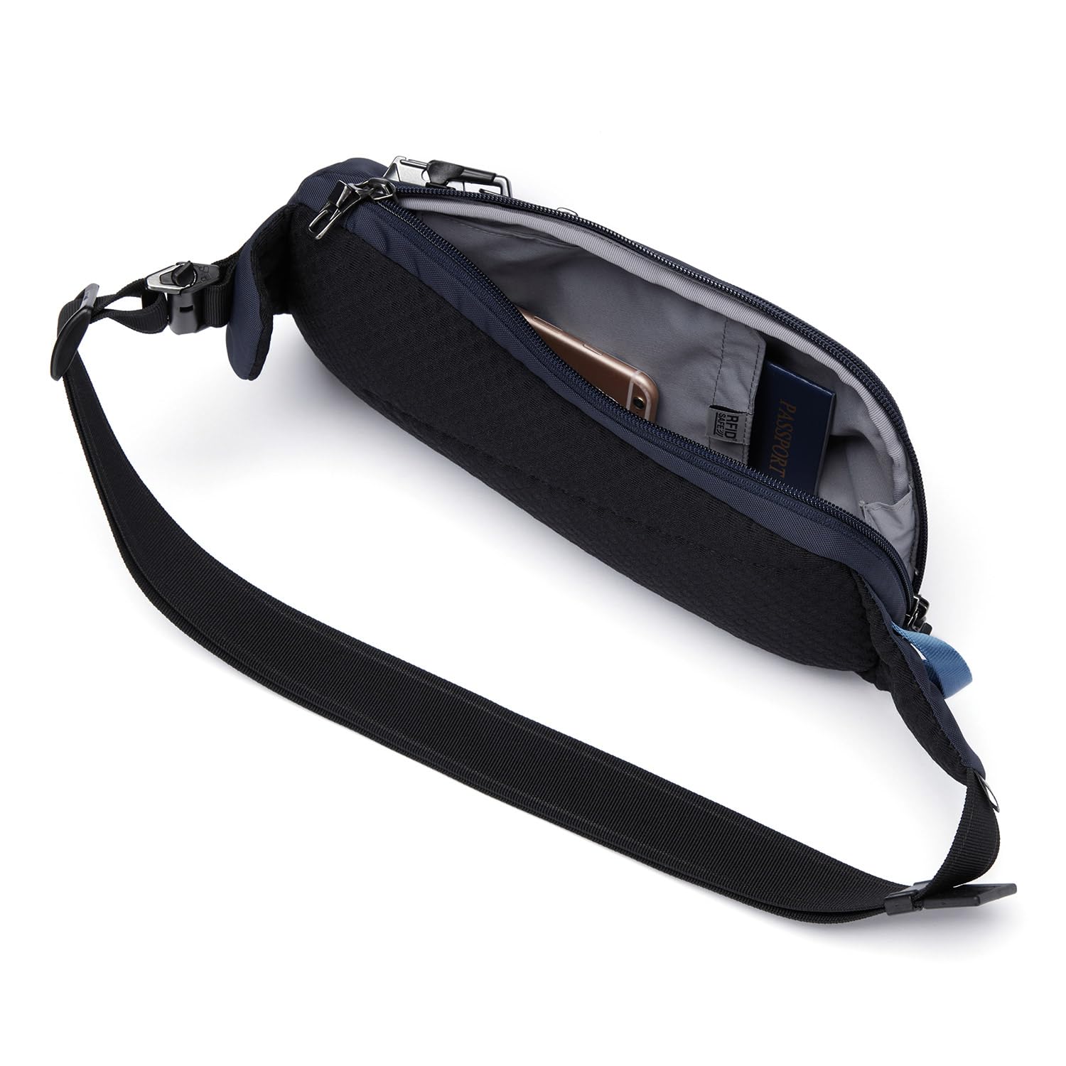 Description Navigate the city with confidence using this compact, lightweight sling pack. It fits your day’s essentials in something that keeps things safely snug on your body, with extra-level lockable zips and a cut-resistant front panel.